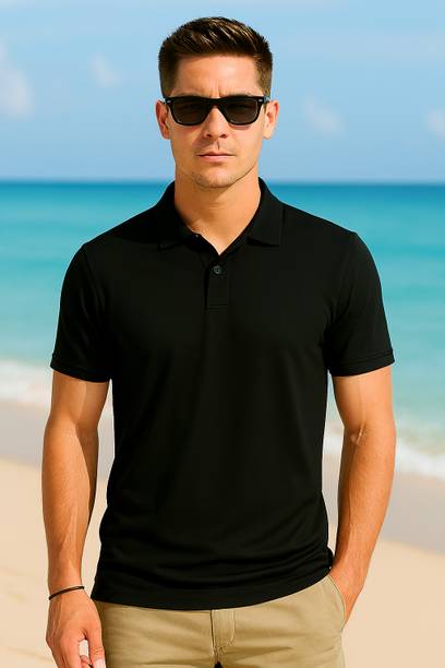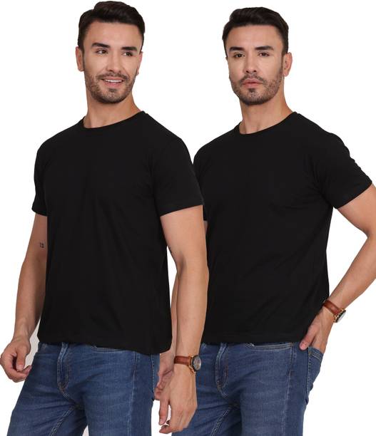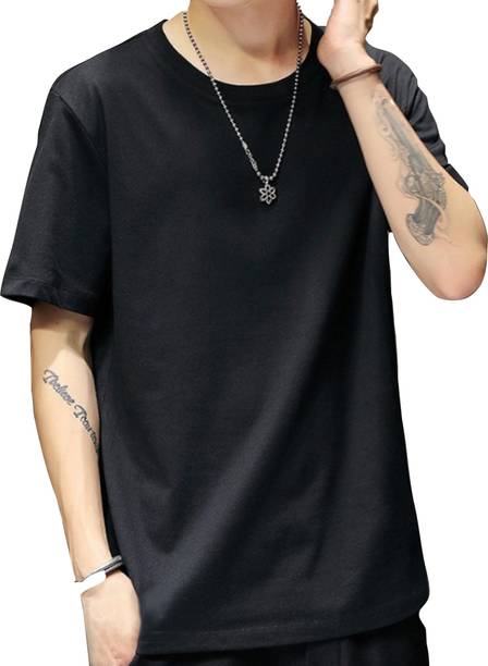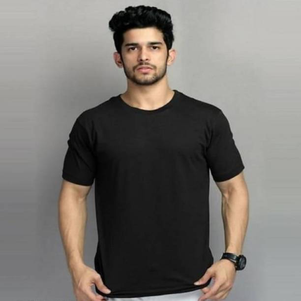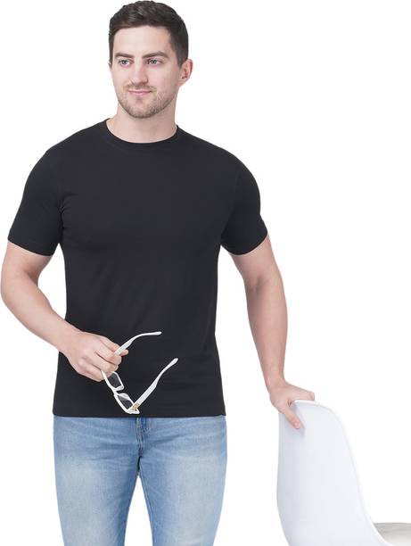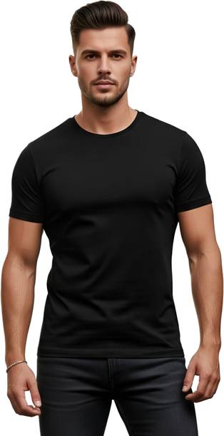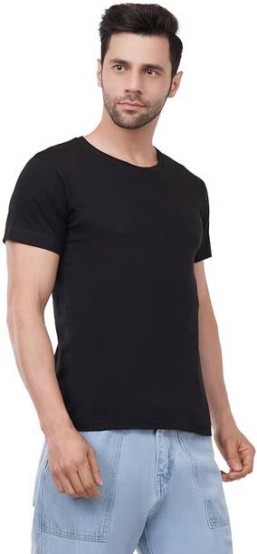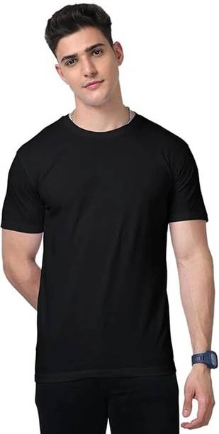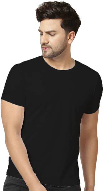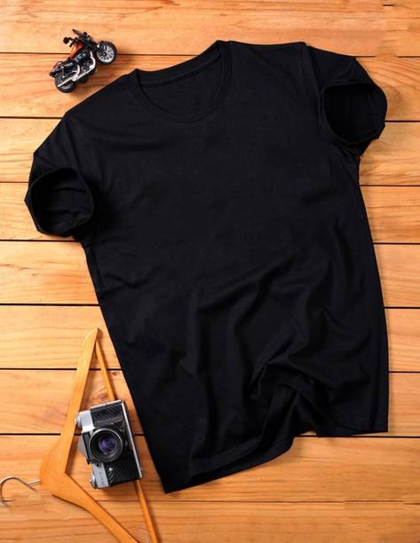 d.) Hi Fashion Solid Men Round or Crew Black T-shirt