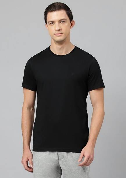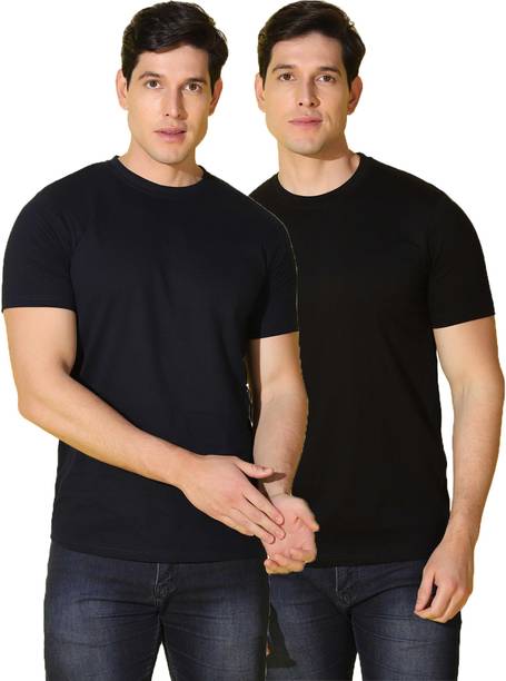 London Hills Solid Men Round Neck Black, White T-Shirt