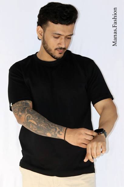 INdiAN ENGiNEER Solid Men Round Neck Black T-Shirt