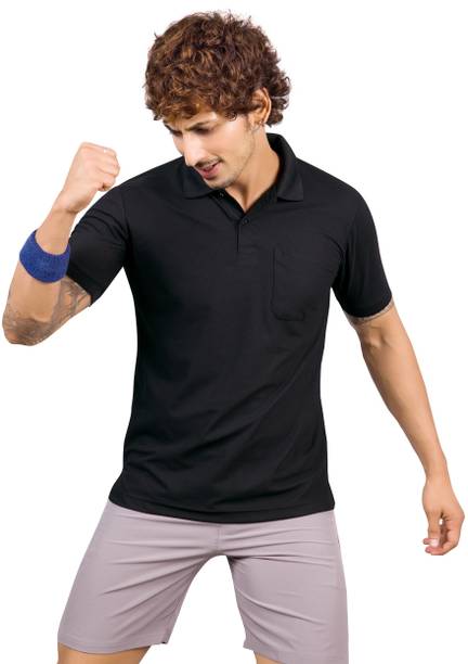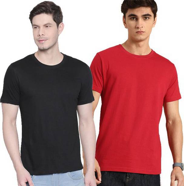 Organic Chics Solid Men Round Neck Black, Red T-Shirt