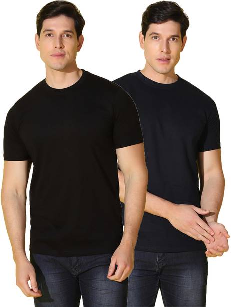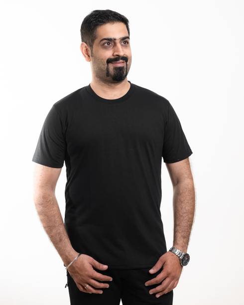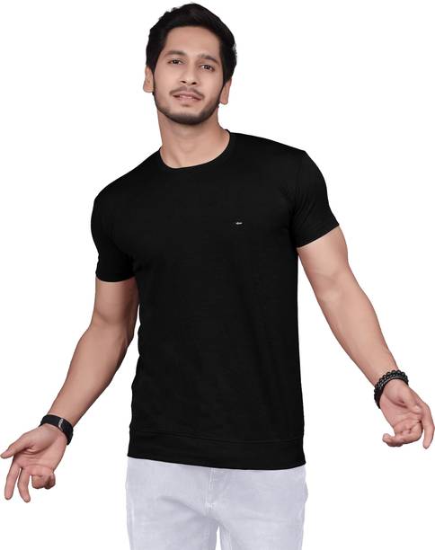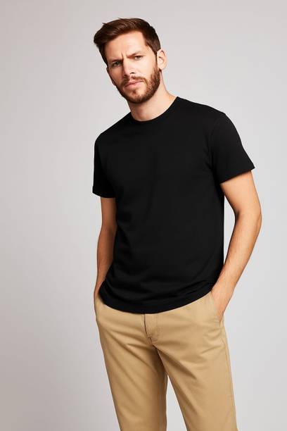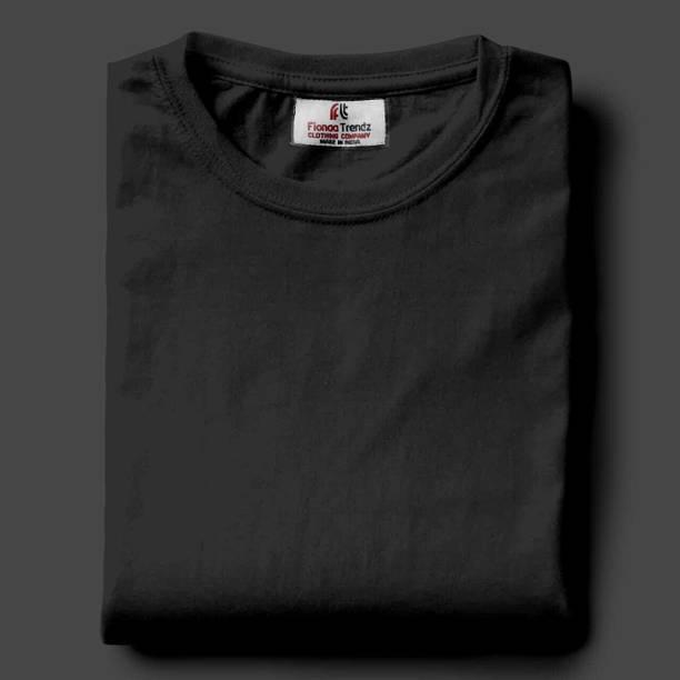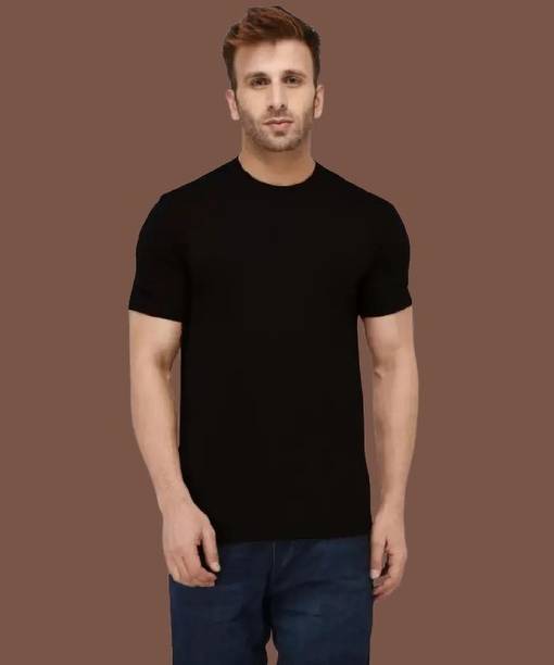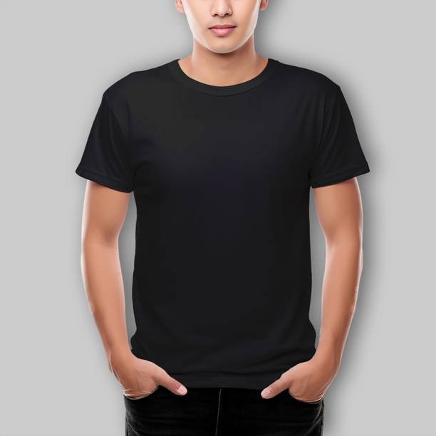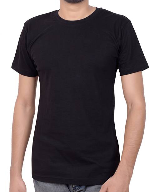 LazyChunks Solid Men Round Neck Black T-Shirt