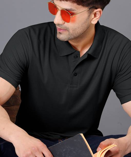 WOOSTRO Solid Men Polo Neck Black T-Shirt
