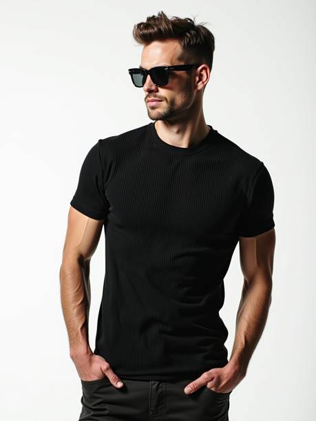 LazyGreg Solid Men Round Neck Black T-Shirt