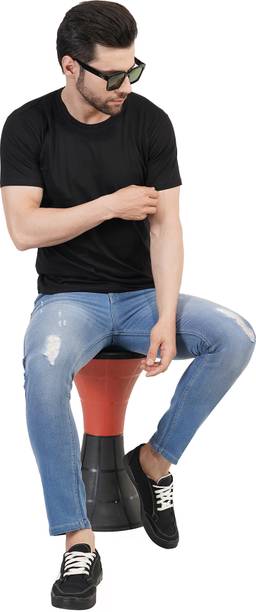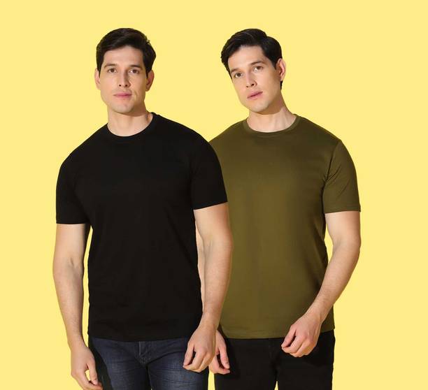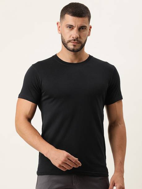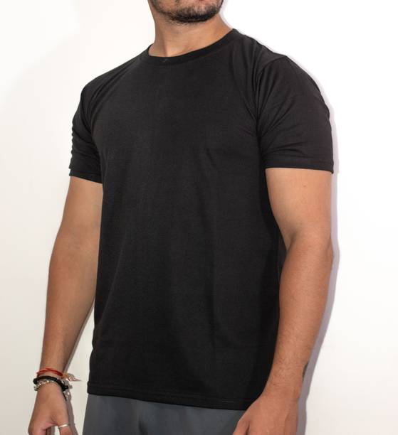 d.) Hi Fashion Solid Men Round or Crew Black T-shirt