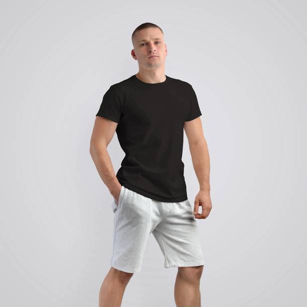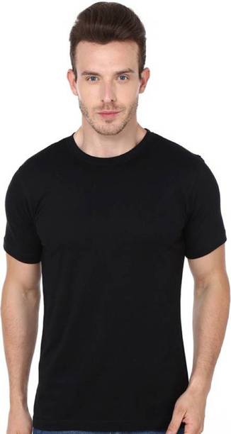 d.) Hi Fashion Solid Men Round or Crew Black T-shirt
