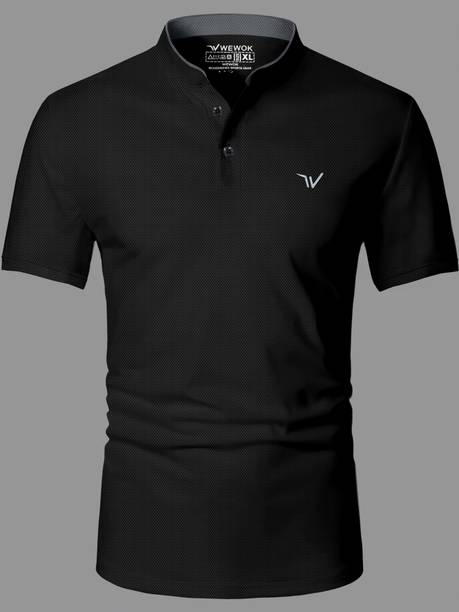 c.) Attitude Start of Fashion Solid Men Henley Reversible Black T-shirt
