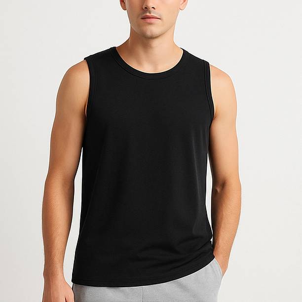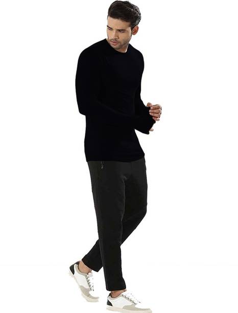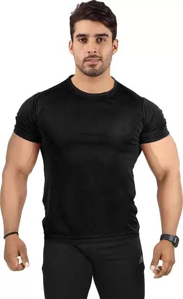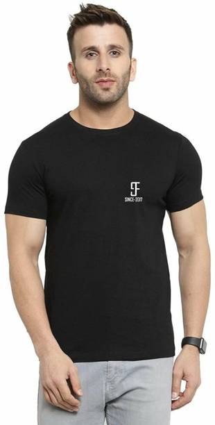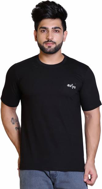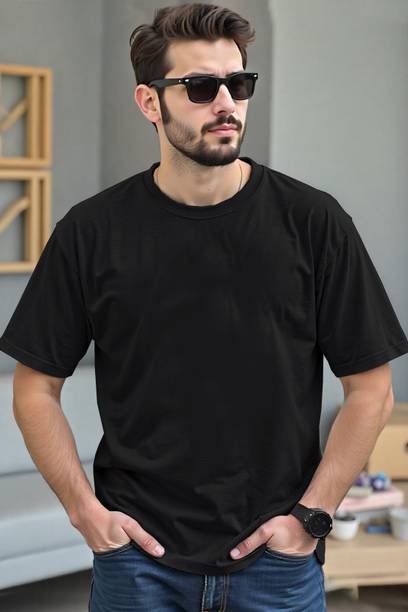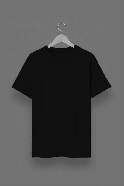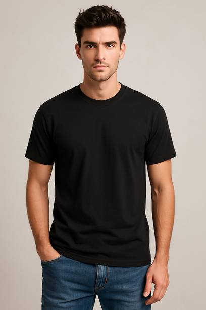 d.) Hi Fashion Solid Men Round or Crew Black T-shirt
