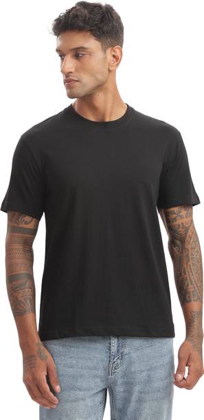a.) Metronaut Solid Men Round-neck Black T-shirt