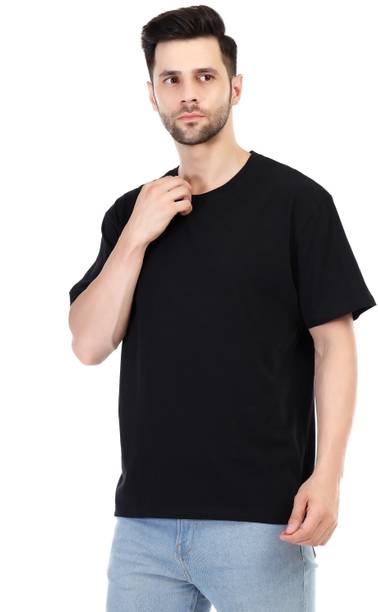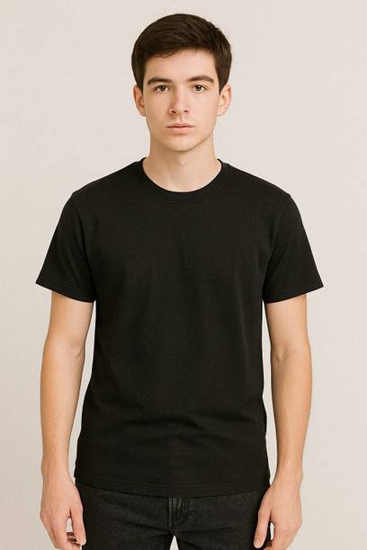 d.) Hi Fashion Solid Men Round or Crew Black T-shirt