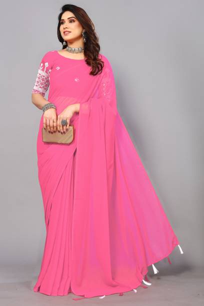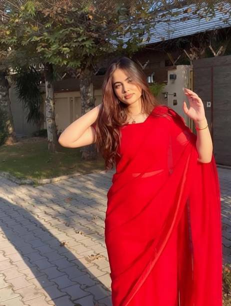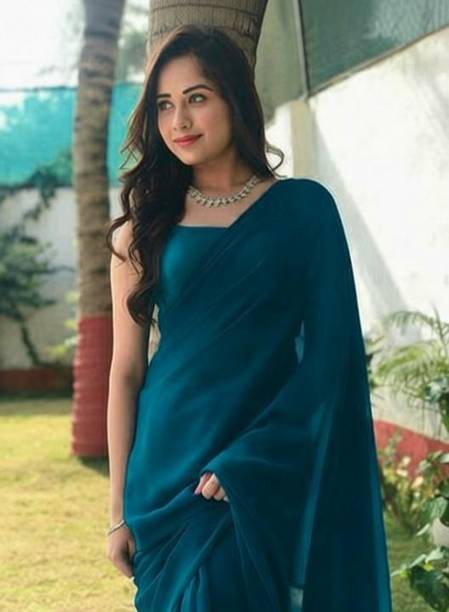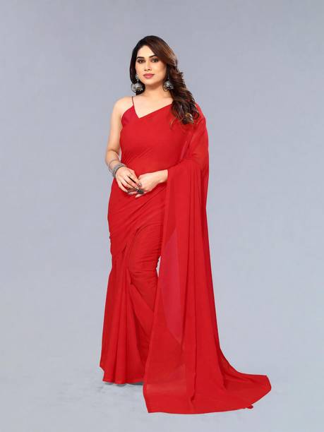 Plain georgette sarees are timeless and quite versatile to wear. A style that never goes out of fashion, georgette sarees are lightweight, crinkled and twisted fabric that gives you a perfect drape. Although georgette is woven in two forms; pure and faux, these sarees can be found in other varieties such as satin georgette, poly georgette, and jacquard georgette. If you are looking for a simple yet stunning look, pure georgette sarees are easy to wear and carry. Apt for day-long events, you won't feel the weight of carrying them on you even at day end. You can style plain georgette sarees with a variety of designer blouses. These solid coloured sarees give you a wide opportunity to mix and match blouses of the same shade or contrasting colours to attain a different look every time. For example, you can wear a crisp silk blouse with minimal or no jewellery letting the saree be the highlight of your ensemble. For a grand occasion like a wedding or an anniversary, you can either wear a heavily embellished designer blouse or precious gemstones to complement the event's grandeur. Brands such as Mirchi Fashion, Kulnaari, Ratnavati, Bombey velvet Fab, and Sareeflame offer plain georgette saree online. The information you are reading has been last updated on 24-Dec-25.