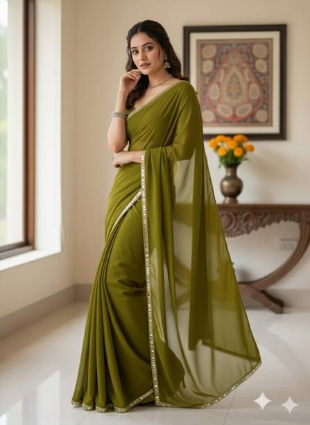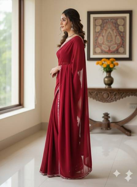 Plain georgette sarees are timeless and quite versatile to wear. A style that never goes out of fashion, georgette sarees are lightweight, crinkled and twisted fabric that gives you a perfect drape. Although georgette is woven in two forms; pure and faux, these sarees can be found in other varieties such as satin georgette, poly georgette, and jacquard georgette. If you are looking for a simple yet stunning look, pure georgette sarees are easy to wear and carry. Apt for day-long events, you won't feel the weight of carrying them on you even at day end. You can style plain georgette sarees with a variety of designer blouses. These solid coloured sarees give you a wide opportunity to mix and match blouses of the same shade or contrasting colours to attain a different look every time. For example, you can wear a crisp silk blouse with minimal or no jewellery letting the saree be the highlight of your ensemble. For a grand occasion like a wedding or an anniversary, you can either wear a heavily embellished designer blouse or precious gemstones to complement the event's grandeur. Brands such as Mirchi Fashion, Kulnaari, Ratnavati, Bombey velvet Fab, and Sareeflame offer plain georgette saree online. The information you are reading has been last updated on 19-Dec-25.