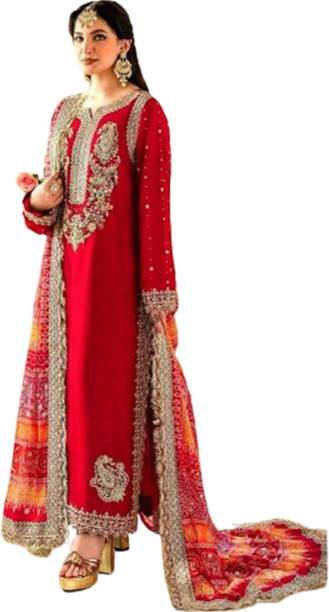 If you are looking for an ensemble that exudes timeless charm, plain suits with heavy dupattas are an ideal option. The unique combination of simplicity and opulence provides a regal and versatile look. These outfits are ideal for women who like to look put together effortlessly. Crafted from comfortable fabrics like silk blend, cotton, or organza, these suit sets can keep you relaxed for long hours. The simplicity of the suits allows you to create a minimalistic look, making them suitable for everyday use. However, when you pair the dupatta, it makes you look party-ready and allows you to shine. You can buy the latest suits with dupattas from brands like Willmake, Manvaa, M Fashion, Jay Kuber Tax, Het Designer Studio, and more. The classic silhouette of these suits offers subtle elegance, making them a must-have in your wardrobe. Trendy pattern options for this ensemble include embroidered, floral print, checkered, colourblock, geometric print, dyed, and more to meet your requirements. Dupattas that come with these suits add a touch of grandeur to the ensemble and can be styled with various other outfits. Check and compare the prices of these outfits and get the desired garments. Select the best plain suit with a heavy dupatta to make a statement wherever you go.