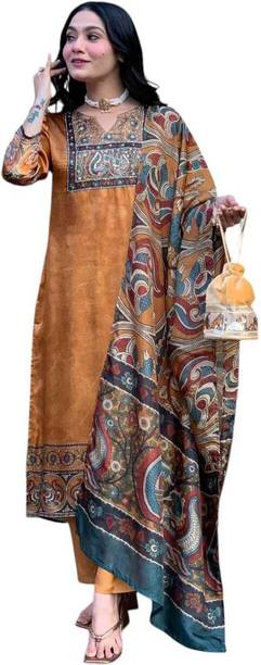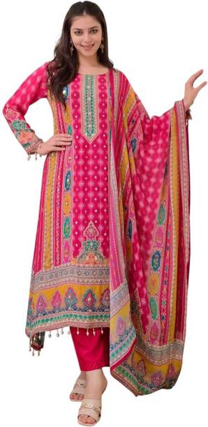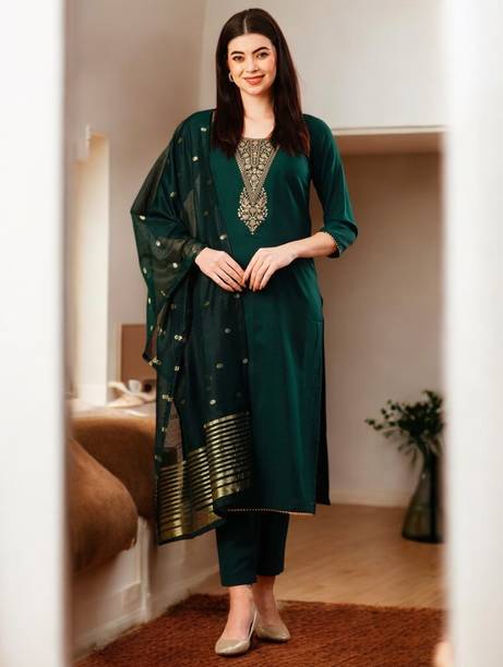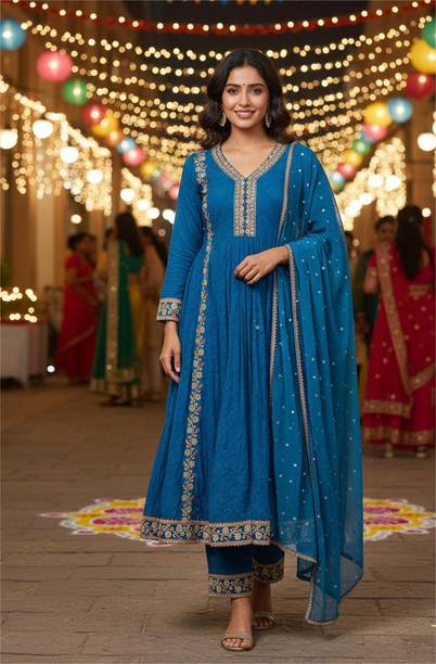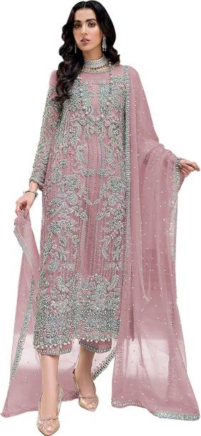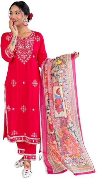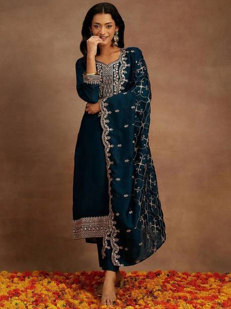 If you are looking for an ensemble that exudes timeless charm, plain suits with heavy dupattas are an ideal option. The unique combination of simplicity and opulence provides a regal and versatile look. These outfits are ideal for women who like to look put together effortlessly. Crafted from comfortable fabrics like silk blend, cotton, or organza, these suit sets can keep you relaxed for long hours. The simplicity of the suits allows you to create a minimalistic look, making them suitable for everyday use. However, when you pair the dupatta, it makes you look party-ready and allows you to shine. You can buy the latest suits with dupattas from brands like Willmake, Manvaa, M Fashion, Jay Kuber Tax, Het Designer Studio, and more. The classic silhouette of these suits offers subtle elegance, making them a must-have in your wardrobe. Trendy pattern options for this ensemble include embroidered, floral print, checkered, colourblock, geometric print, dyed, and more to meet your requirements. Dupattas that come with these suits add a touch of grandeur to the ensemble and can be styled with various other outfits. Check and compare the prices of these outfits and get the desired garments. Select the best plain suit with a heavy dupatta to make a statement wherever you go.