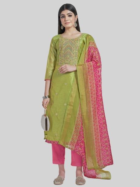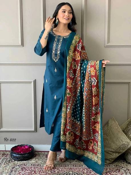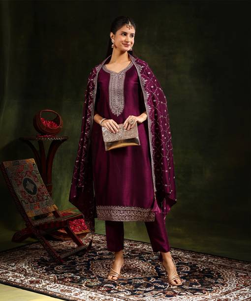 If you are looking for an ensemble that exudes timeless charm, plain suits with heavy dupattas are an ideal option. The unique combination of simplicity and opulence provides a regal and versatile look. These outfits are ideal for women who like to look put together effortlessly. Crafted from comfortable fabrics like silk blend, cotton, or organza, these suit sets can keep you relaxed for long hours. The simplicity of the suits allows you to create a minimalistic look, making them suitable for everyday use. However, when you pair the dupatta, it makes you look party-ready and allows you to shine. You can buy the latest suits with dupattas from brands like Willmake, Manvaa, M Fashion, Jay Kuber Tax, Het Designer Studio, and more. The classic silhouette of these suits offers subtle elegance, making them a must-have in your wardrobe. Trendy pattern options for this ensemble include embroidered, floral print, checkered, colourblock, geometric print, dyed, and more to meet your requirements. Dupattas that come with these suits add a touch of grandeur to the ensemble and can be styled with various other outfits. Check and compare the prices of these outfits and get the desired garments. Select the best plain suit with a heavy dupatta to make a statement wherever you go.