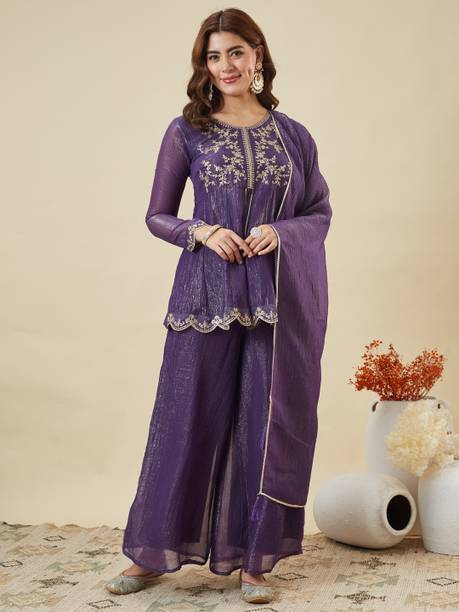 A palazzo suit is a fusion of traditional and contemporary designs, allowing you to make a statement wherever you go. They are a set of three clothing pieces: a kurta, a dupatta, and pants. Explore the latest collection of these suits online and select the one that best matches your taste. In addition, these versatile suits can be styled in many ways. You can choose them for various occasions, such as a family get-together, wedding, party, engagement, or any other function. Furthermore, you can select from various patterns available online. Make a statement on the next event you have to attend with a fusion suit that comes with an embellished crop top, a jacket, and pants. On the other hand, stunning long and flared Anarkali suits give a trendy look to the overall ensemble. You can also get several fabric options in these clothing articles, starting from cotton, linen, and georgette to silk. Several brands that offer palazzo suits online at varied price ranges include Klosia, Fashion Dream, Kavyu, Jalwaniya, Jalsha, and many more. Buy your preferred suits online and get them delivered to your doorstep without any hassle.