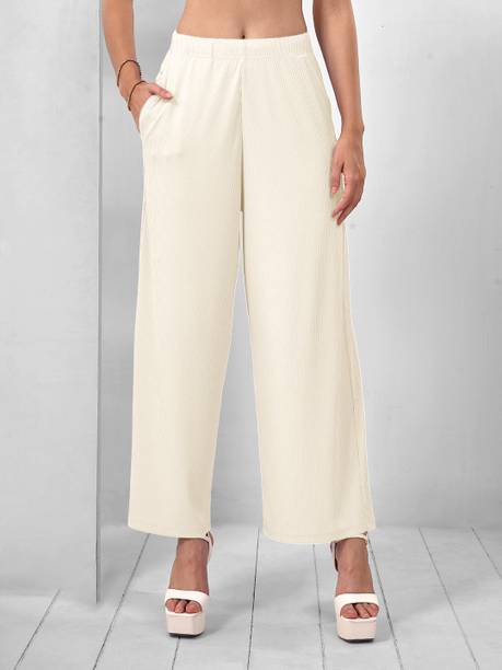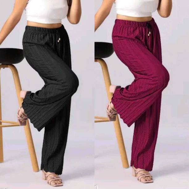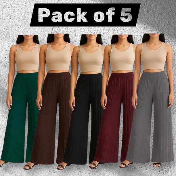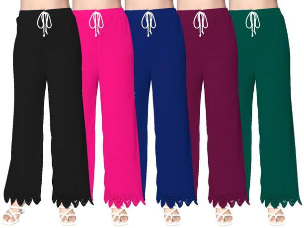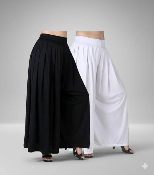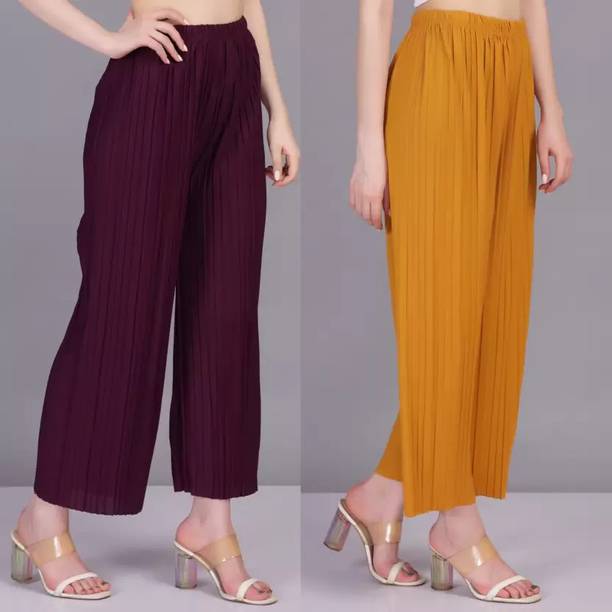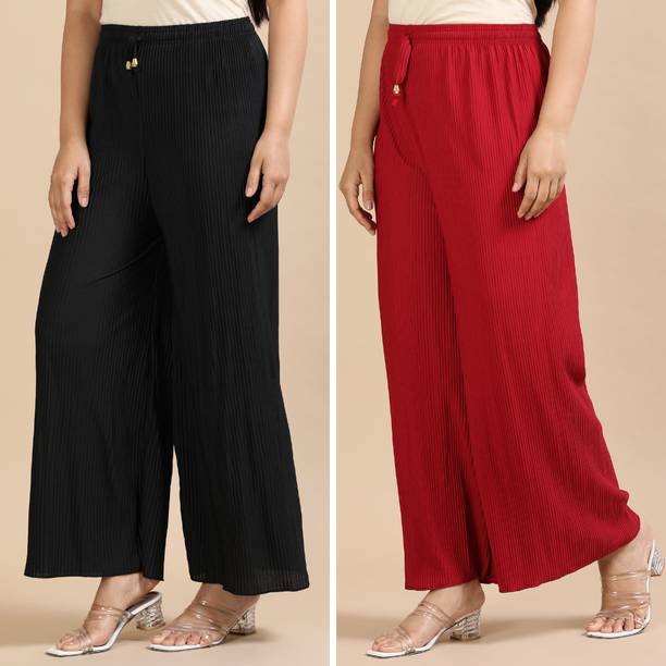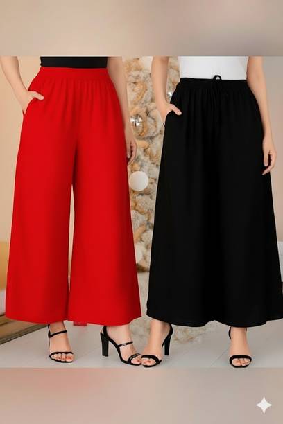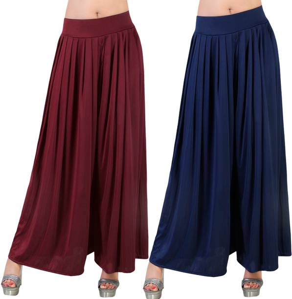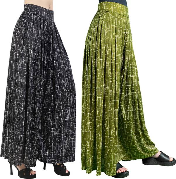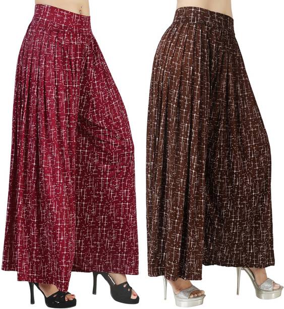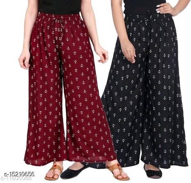 If you are an office-going woman, palazzo pants are a must-have in your collection. Palazzo designs (new) are available online to match your style and aesthetic. This free-flowing pants can be paired with an embroidered kurta for special occasions. To style it down, you can wear a pastel-colored kurta with these pants. They provide enough air and are perfect to wear on a summer day. You can choose from the fabric options like rayon, pure cotton, cotton blend, cotton rayon blend, georgette, cotton fleece blend, and more available online. These pants can increase your grace without much effort and can be paired in multiple ways. Purchase this bottomwear from brands like 109°F, 2 Kolpol, 20Dresses, 24Hour Fashion, 5stitch, and more present online. To match your style preferences, you can find multiple pattern options like striped, embroidered, solid, dip and dye, applique, camouflage, and more. Choose pants that represent your personality and make you feel confident. For special events, you can purchase pants with ruffle designs that can be paired with short tops or kurtis. These pants are available for occasions like casual, party, formal, festive, and loungewear. Buy palazzo designs (new) that match your style statement and pair them up with accessories to look effortlessly beautiful.