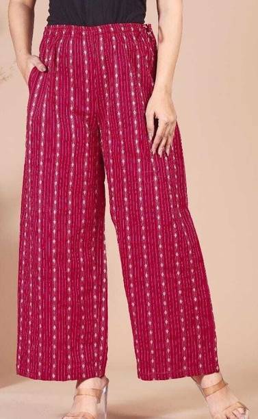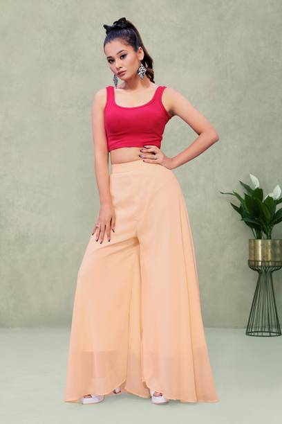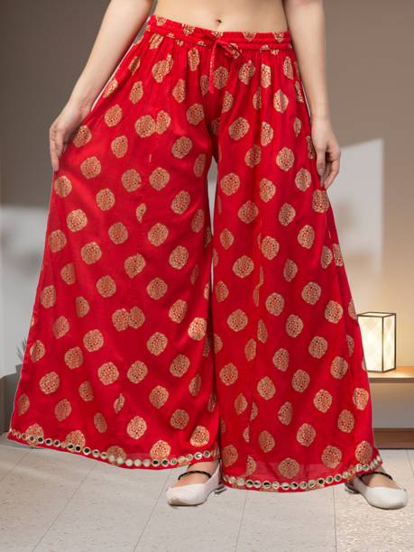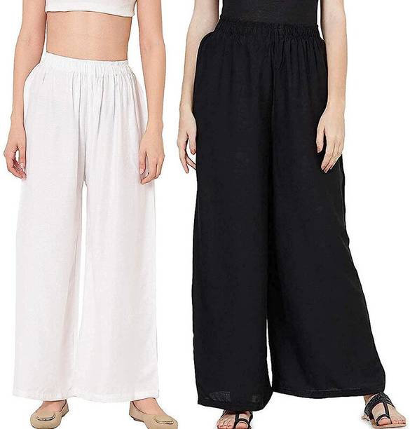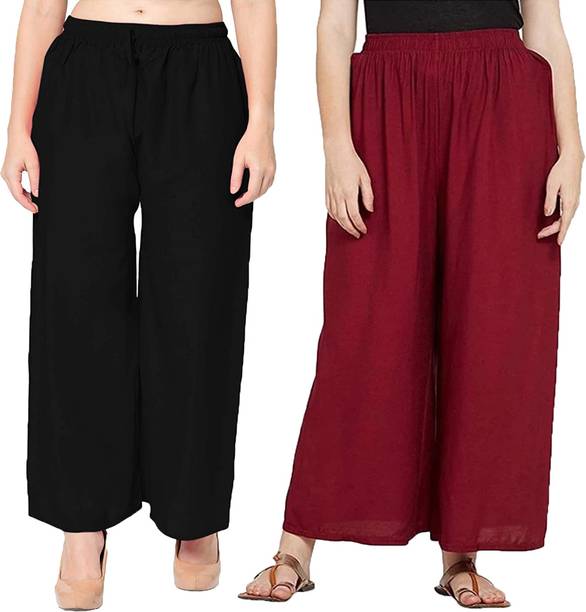 If you are an office-going woman, palazzo pants are a must-have in your collection. Palazzo designs (new) are available online to match your style and aesthetic. This free-flowing pants can be paired with an embroidered kurta for special occasions. To style it down, you can wear a pastel-colored kurta with these pants. They provide enough air and are perfect to wear on a summer day. You can choose from the fabric options like rayon, pure cotton, cotton blend, cotton rayon blend, georgette, cotton fleece blend, and more available online. These pants can increase your grace without much effort and can be paired in multiple ways. Purchase this bottomwear from brands like 109°F, 2 Kolpol, 20Dresses, 24Hour Fashion, 5stitch, and more present online. To match your style preferences, you can find multiple pattern options like striped, embroidered, solid, dip and dye, applique, camouflage, and more. Choose pants that represent your personality and make you feel confident. For special events, you can purchase pants with ruffle designs that can be paired with short tops or kurtis. These pants are available for occasions like casual, party, formal, festive, and loungewear. Buy palazzo designs (new) that match your style statement and pair them up with accessories to look effortlessly beautiful.