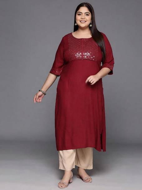 Are you looking for plus size kurtis that are trendy and comfortable simultaneously? Numerous alternatives are available online, including A-line, front-slit, ethnic dresses, asymmetrical, flared, gown designs, and Anarkali. Nothing beats a designer kurta because it can be worn on formal occasions, outings with friends, festivals, and more. Plus size kurtis will let you flaunt your curves effortlessly. You can choose from stylish patterns and necklines and pair them with a variety of bottoms. Team your ethnic dress with leggings, palazzo, jeggings, and more to create an indo-western look. Some fabric options you can choose from are crepe, cotton rayon, georgette, chanderi, art silk, pure cotton, satin, modal, and polyester, among others. Abstract, washed, applique, block print, kalamkari, embroidered, self-design and floral prints are some trendy patterns available online. Pay attention to the silhouettes and materials while purchasing them, then choose the option that meets your requirements. Check out colours like pink, dark blue, yellow, maroon, purple, and so on. Top brands like Jevi Prints, Swasti, MintMarie, Yash Gallery, Voom, and others sell traditional attires online. Swipe and select from a wide range of designer outfits and make a unique fashion statement