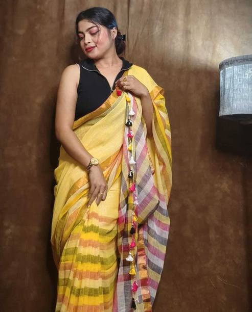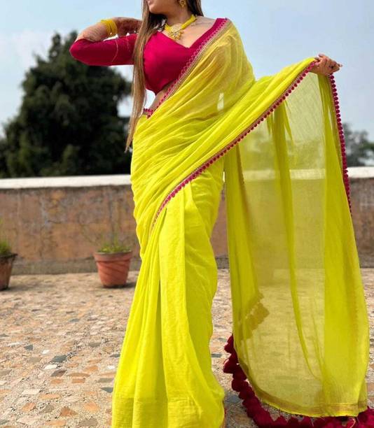 If you are a fan of a stylish contemporary look, opt for pom-pom sarees made of comfortable fabric. They are available in various colours and patterns to meet your requirements. This traditional attire can be paired with multiple blouses to create different looks. To become the centre of attraction on a special event, try pairing this attire with sparkling jewellery. For a summer event, you can choose sarees made of breathable fabric to stay comfortable throughout the day. Fabric options like pure silk, pure cotton, chiffon, georgette, cotton silk, cotton blend, and more are available to meet your requirements. This drape wear style is perfect for the sangeet function, as you can look glamorous without much effort. Buy sarees designed with pom-poms from brands like Divastri, Saara, Samah, Sariya, Pranjal Art, and more available online. You can choose pom-pom in saree styles like Kanjivaram, Banarasi, Jamdani, Baluchari, Garad, and more to suit your occasion. Take inspiration from your favourite fashion blogger or Bollywood Divas to style the attire in a unique way. From housewarming parties to friends' reception parties, you will find sarees matching the event. Buy pom-pom sarees in lehenga, half and half, or some other style to match your personality and get them delivered to your house.