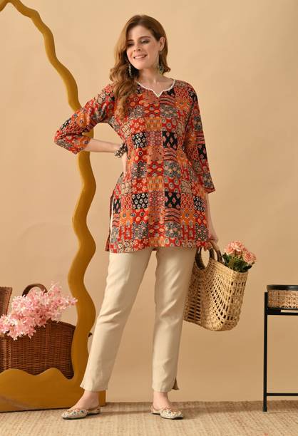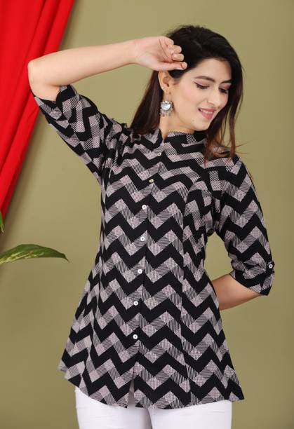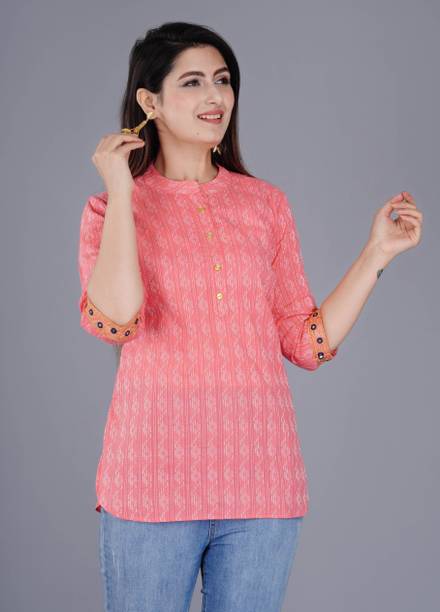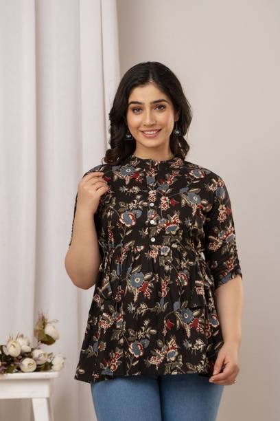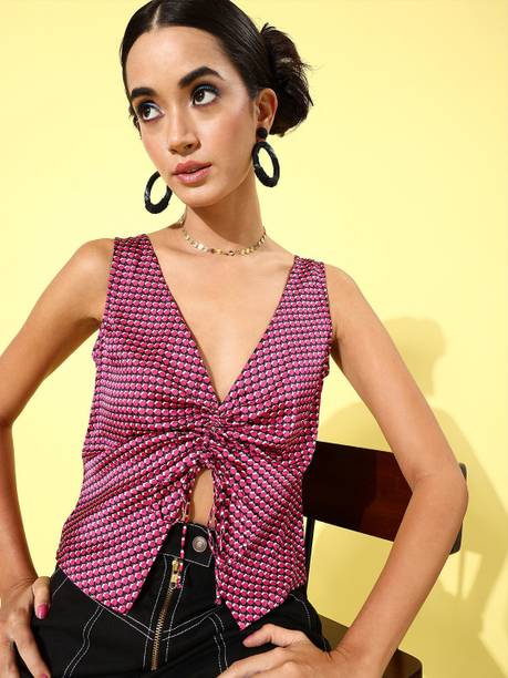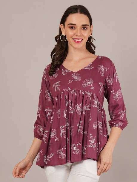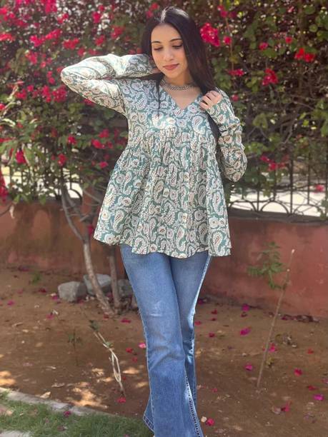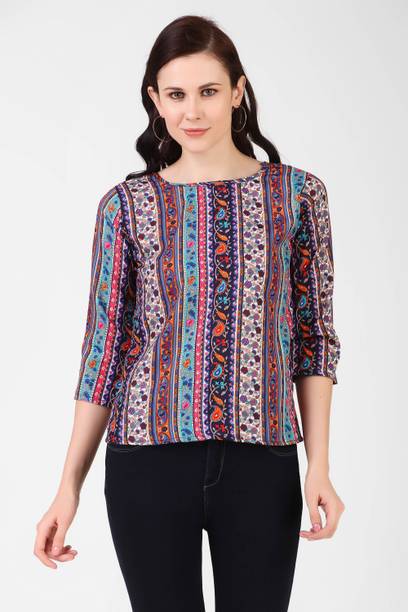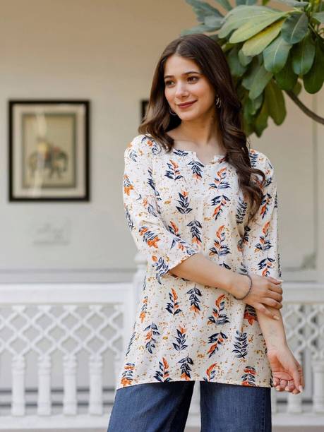 Floral or striped, polka or zig-zag print tops never run out of fashion. Whether you have to attend a party, casual hangout, formal event, or festival, printed tops are the easiest choice for most women. Pair it up with formal trousers, jeans, or leggings and add matching jewellery for a fashionable look. Check out the variety of tops available in different designs, patterns, colour combinations, themes, necklines, fabrics, and others available online to meet your requirements. Fashion crops, cutout detail, solid summer blouson, victorian, printed ruffles, and other themes are available online. According to your preference, you can choose tops with fitting options like slim, relaxed, oversized and regular. Flutter, flute, batwing, kaftan, balloon, petal, puff, roll up, slit, cap, bishop, etc., are some sleeve patterns available online to choose from. Check and compare reviews and ratings of products before adding them to the cart online. Neck styles like lapel, shawl, fashion, halter, choker, mandarin, round, cowl, peter pan, scoop, and others are available to meet your fashion requirements. Compare and choose print tops online from brands like Selvia, Harpa, Thhar Galiyara, Van Heusen, Leriya Fashion, etc. Order the tops in the desired design and size to get compliments wherever you go.