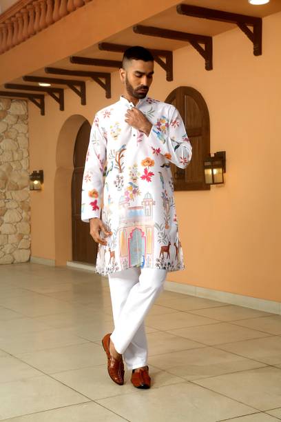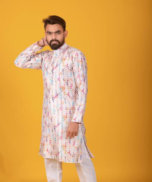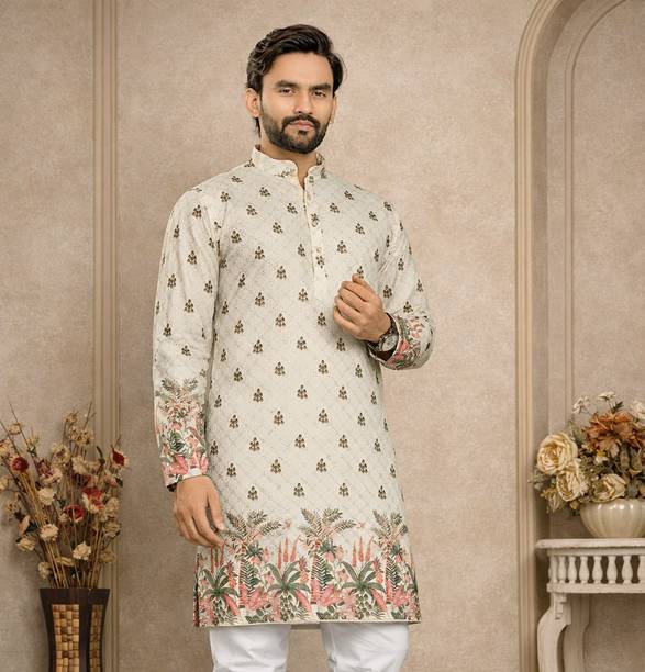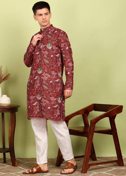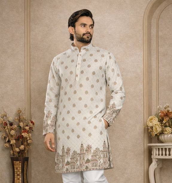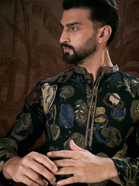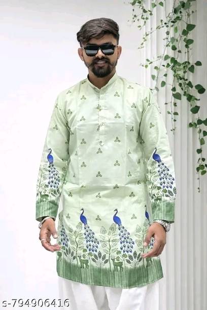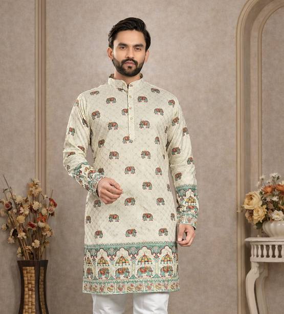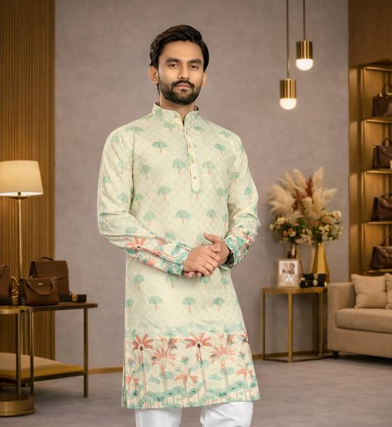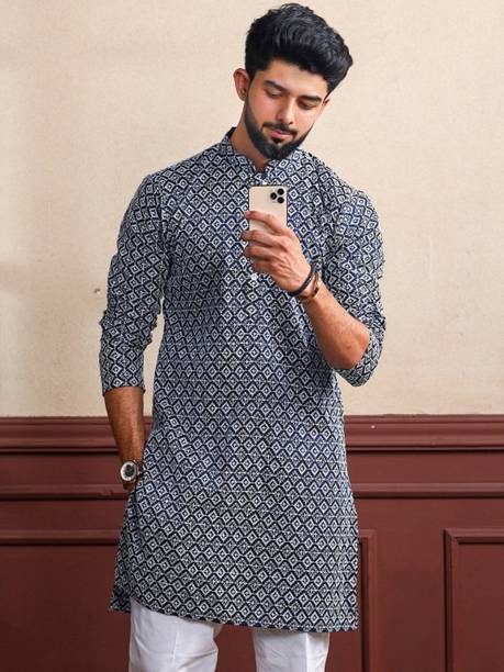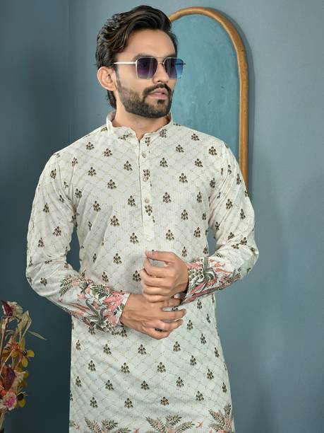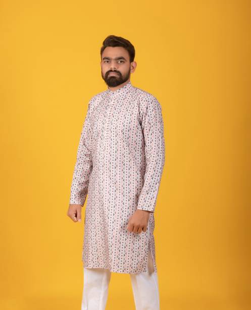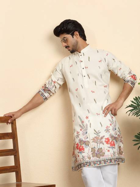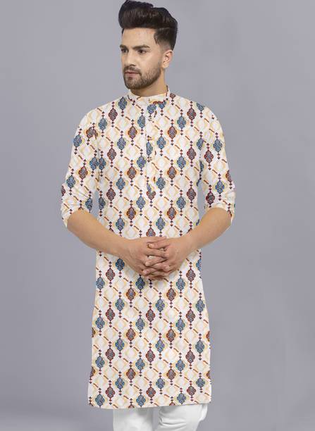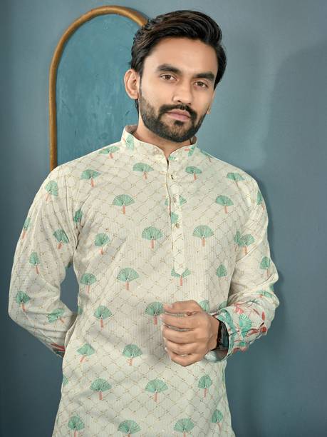 Explore a variety of unique and colourful range of printed kurtas for men online and choose the ones you like to make a statement at all your traditional and formal occasions. Printed kurtas for men come in different prints like a kalamkari block print, Jacquard, geometric prints, and beyond. You can get long, short, and shirt kurtas as per your requirement. The latest printed kurta for men (new) collection includes a range of colours, sizes, lengths, patterns, fabrics, neck types, pocket styles, sleeve types and much more to suit your needs perfectly. Button closure, slide slits, and straight hem makes it easy to wear and carry while wearing. They are made from high-quality fabrics, making them perfect for all seasons. You can combine them with your favourite trousers or jeans and an ethnic jacket. You can also pair them with matching accessories like a gold bracelet, chain, and Kolhapuri footwear for a handsome Indian look. Brands like FRELURO, allan peter, See Designs, ELEPANTS, Kunj Creation, and many more offer a unique range of kurtas in prints and solids, slim fit kurtas, long and short kurtas at the best price. Purchase them from an infinite range of modern designs from the comfort of your home and get them delivered to your doorstep. The information you are reading has been last updated on 17-Apr-26.