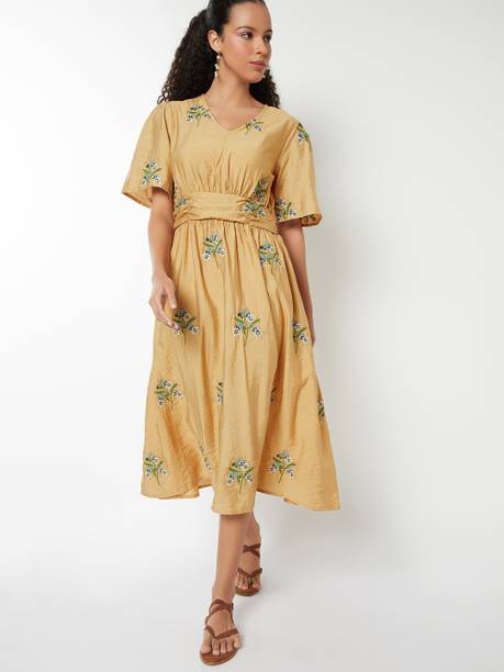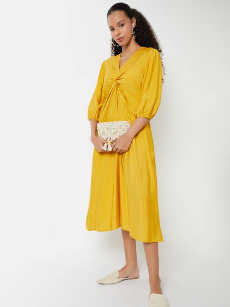 A-line dresses form an A-shape silhouette and exude a flared look. These are picture perfect party wear dresses and can be used for weddings too. You will find maxi dresses under the A-line category too. Popular brands famous for their A-line dress designs include Athena and Miss Chase.
