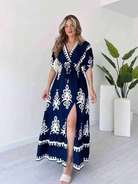 Maxi dresses go all the way down to the floor. They feature a flowing silhouette that makes for a form-flattering figure with an elegant touch. Maxi dresses are made from cotton, silk, or polyester. Chevron printed maxi dresses, and solid maxis are the popular options amongst women.
