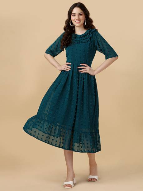 Fit and flare dresses fit near waist-level and flare out at the bottom near the hemlines. They offer a flowy feeling and look visually appealing due to their charming designs. These come in different types. Notable choices amongst fit and flare dresses include the Elevate Women Fit And Flare Black Dress and the U & F Women’s Fit And Flare White, Dark Blue Dress. Fabric types in fit and flare dress range from polyester, net, lace, and others.