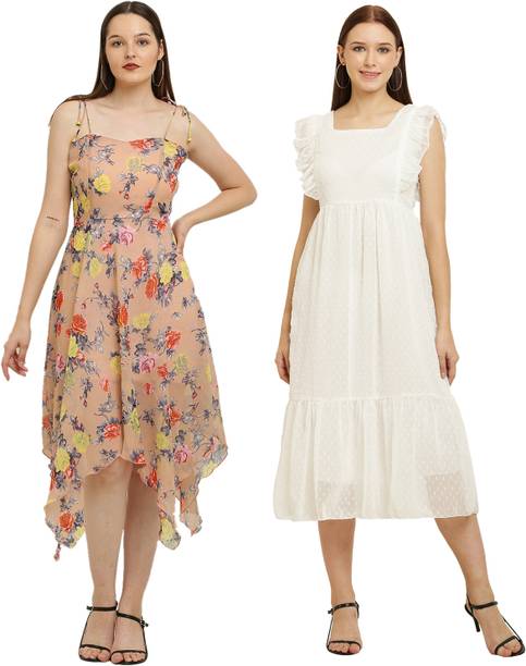 High low dresses feature a high-low hemline which means a high-top and a low bottom design for the hemline. These dresses feature tie-up or drawstring closure near the waist, with an asymmetrical or curved hemline. High low dresses flow well across the contours of the body and add a feminine touch. Georgette and polyester are the common fabrics used for crafting these outfits.