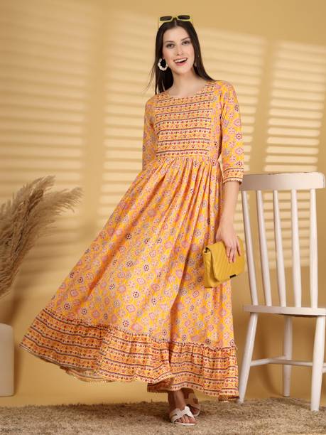 These dresses have “gathers” of fabric at a certain area of the dress, thus grabbing the viewer’s attention or acting as a focal point. Sleeveless and full-sleeved are the common options in these designs. Gathered dress is anywhere between midi and maxi length and are often crafted from lace, polyester, and silk. Common necklines in these dresses are round neckline and boat neckline.