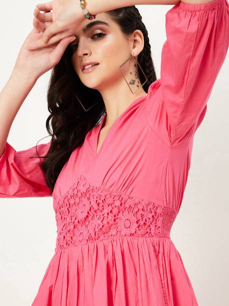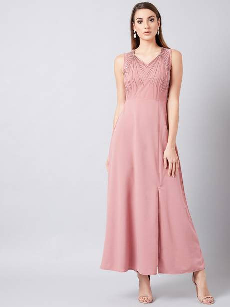 A-line dresses form an A-shape silhouette and exude a flared look. These are picture perfect party wear dresses and can be used for weddings too. You will find maxi dresses under the A-line category too. Popular brands famous for their A-line dress designs include Athena and Miss Chase.