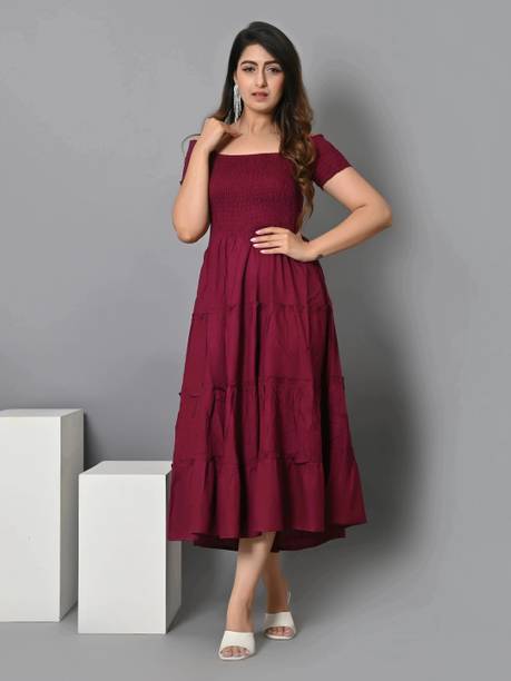 Fit and flare dresses fit near waist-level and flare out at the bottom near the hemlines. They offer a flowy feeling and look visually appealing due to their charming designs. These come in different types. Notable choices amongst fit and flare dresses include the Elevate Women Fit And Flare Black Dress and the U & F Women’s Fit And Flare White, Dark Blue Dress. Fabric types in fit and flare dress range from polyester, net, lace, and others.