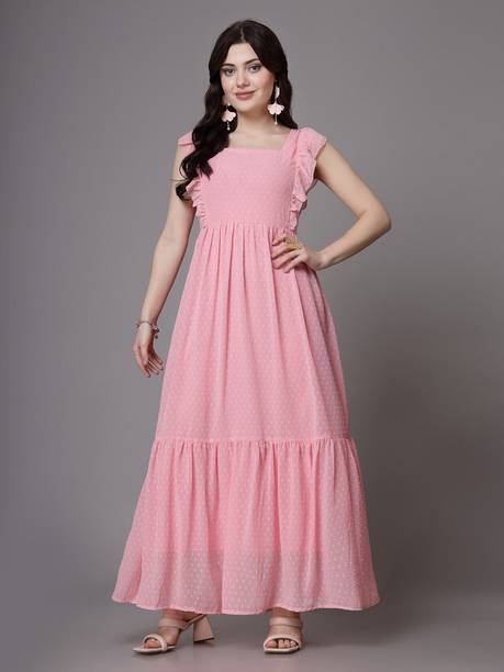 Maxi dresses go all the way down to the floor. They feature a flowing silhouette that makes for a form-flattering figure with an elegant touch. Maxi dresses are made from cotton, silk, or polyester. Chevron printed maxi dresses, and solid maxis are the popular options amongst women.