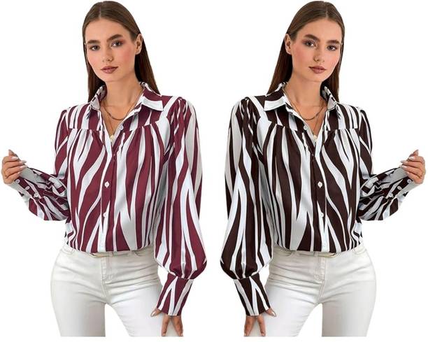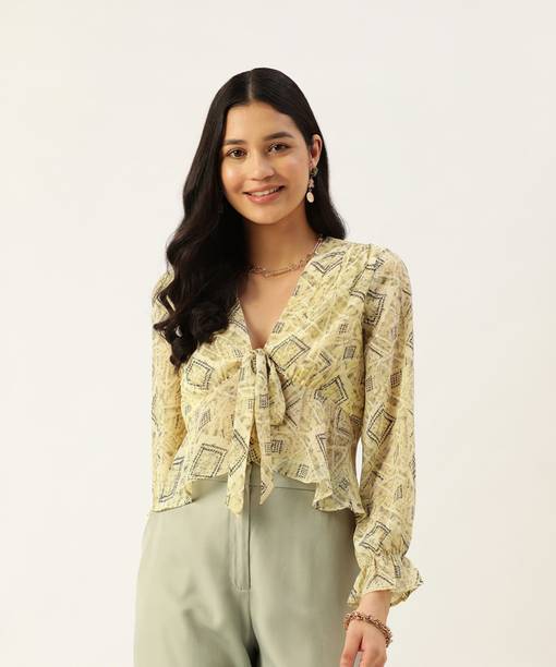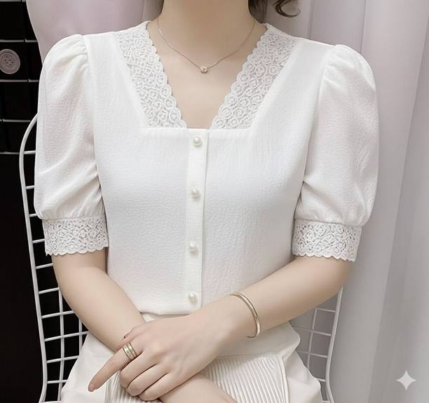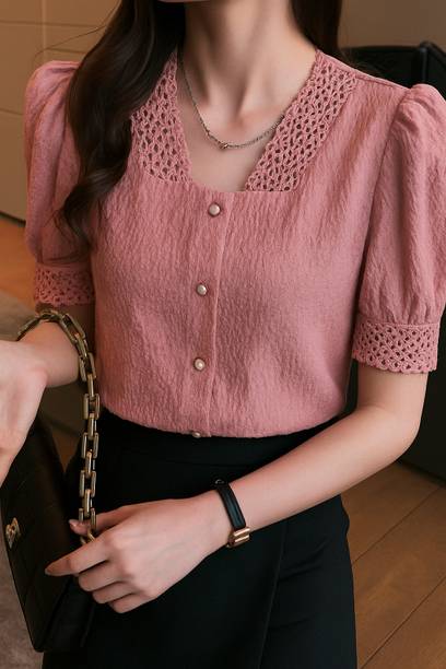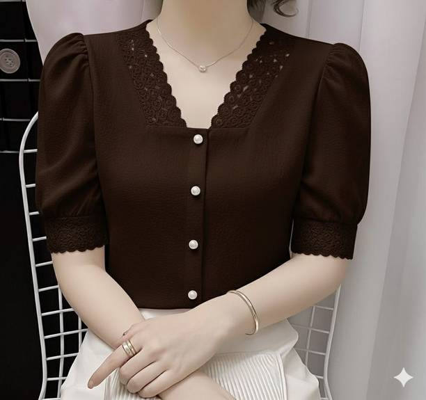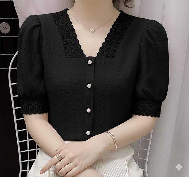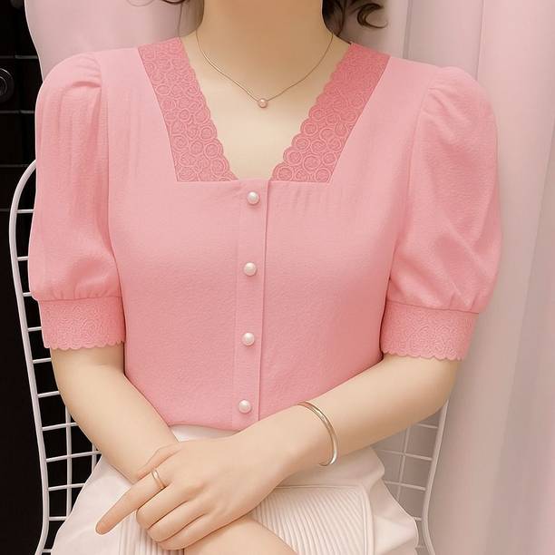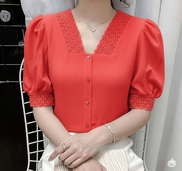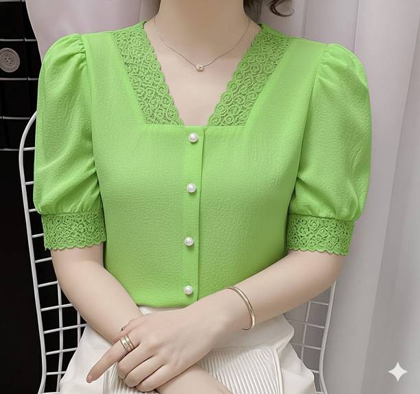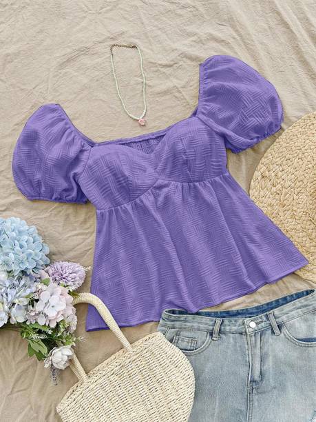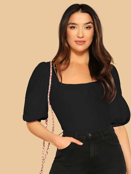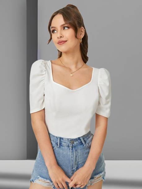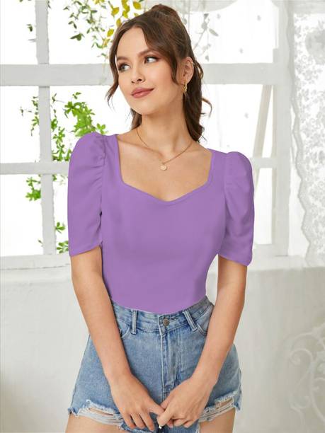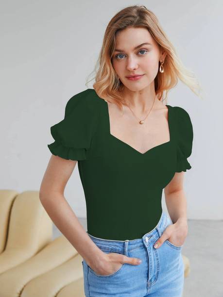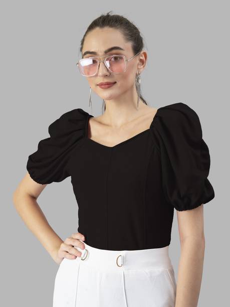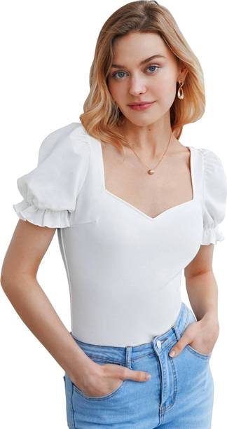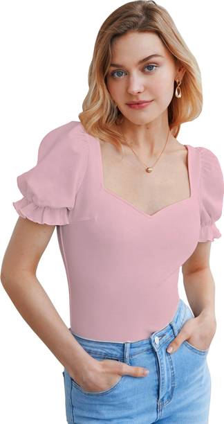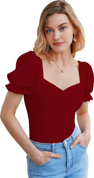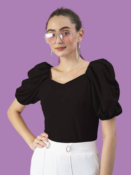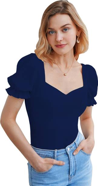 Add puff sleeve tops to your wardrobe to look fashionable and party-ready. The beautiful puffed stitch in the top part of the sleeve makes you look stylish and is loved by fashionistas. Check out the various designs available in the tops available online to meet your fashion requirements. Stylish necklines add elegance to your look, and you can find options like a shawl, strapless, choker, halter, cowl, square, scoop, ruffle, round, mandarin, cold shoulder, one-shoulder, boat, and others. Choose a comfortable fabric from options like lace, net, chiffon, rayon, polyester blend, crepe, lyocell, and more. Pair a puff sleeve blouse with leggings and high heels to create a fashion statement. The top can be worn to parties, offices, hangouts, festivities, etc. Scroll through the various patterns available, like solid, printed, embroidered, striped, floral print, and self-design. Upgrade your top collection by choosing attire from a plethora of colour options available online. Find a suitable garment with puffed sleeves online from brands like Sheetal Associates, Ab Young, Berrylush Curve, Uptownie Lite, Urbanic etc. You can check user ratings and make your choice accordingly. Order puff sleeve tops available in various themes to suit your needs.