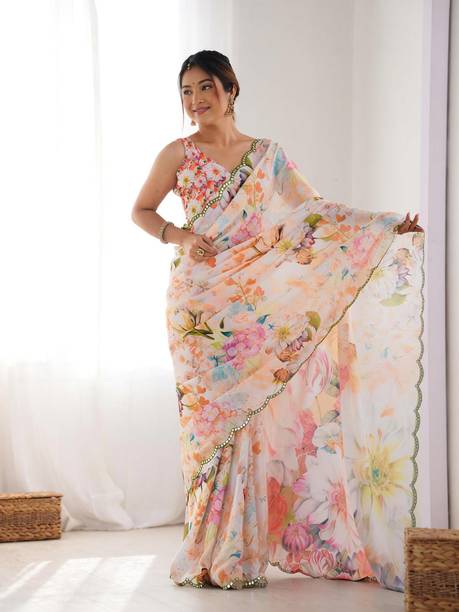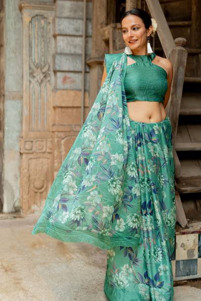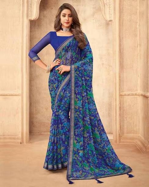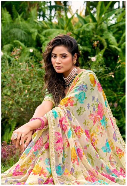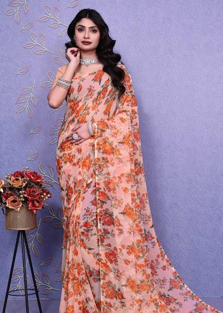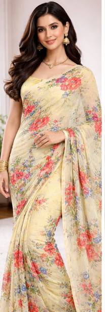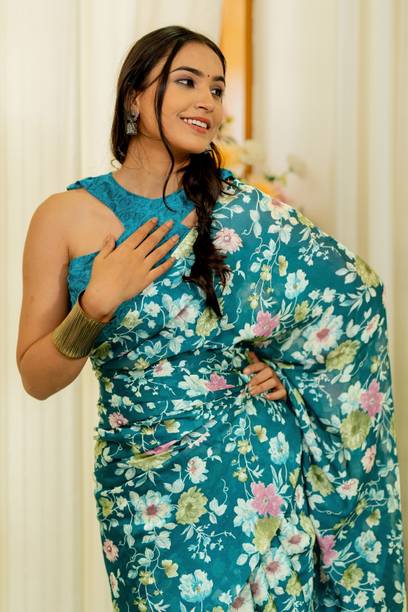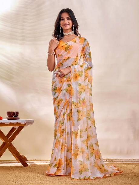 When it comes to popular designs and patterns in sarees, floral prints are a preferred choice of many. If you are looking for a light fabric that looks gorgeous, pure Chiffon floral print sarees are what you need. Available in beautiful colours and patterns, these sarees can make heads turn. Flaunt your style at weddings, parties, or casual outings with friends by wearing this gorgeous drape. Since the fabric is so lightweight, you can wear these sarees in all seasons. You can choose pure Chiffon floral print sarees in various styles like regular saree, stitched saree, 9 yards saree, lehenga saree, half & half saree, and more. Accessorize with heavy metal jewellery or a gold set to highlight your look. Browse the latest pure chiffon floral print sarees collection available online. Choose from popular brands like Krishna R fashion, Anand, A P Super Store, A. Prakash Ji, AADHYA CREATION, AAHELEE, and more. If you can’t make up your mind to choose one saree, you can opt for combo packs. You can also gift these sarees to your friends and family. To revamp your wardrobe, order these gorgeous weaves online and get them delivered to your doorstep.The information you are reading has been last updated on 26-Apr-26.