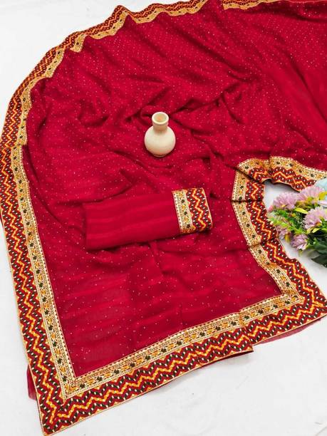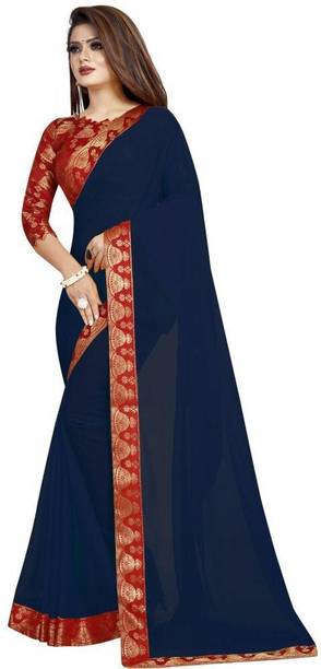If you are looking for comfortable and fancy sarees, the pure georgette sarees with zari borders are the answer. Georgette sarees are not just versatile and lightweight, but they are also elegant, graceful, and sophisticated. You will find a fair range of trendy drapes for daily wear adorned with beautiful motifs. Choose from beautiful designs like mild booti work, lacework embellished with zari, slight sequin work, and graceful zari butta elaborations, along with a plethora of striped and floral prints. The richly designed sarees with stunning aari bharat embroideries, stone-studded trims, zarodosi embellished borders, traditional mirror work, creative ruffles, tassel droppings, cutwork, and dense booti work are a popular choice for weddings, receptions, and other events. Besides their beautiful appearance, the pure georgette sarees with zari borders are durable and long-lasting. Sarees are a much-loved ethnic garment among Indian women, and with the right accessories, they can remarkably enhance your look. So, shop for the latest pure georgette sarees with zari border in radiant, dark, and calming tones to upgrade your ethnic wear collection. Select from the assortment of engaging brands like Arohi Designer, Rashiklal & Co., Kuki, Fevinaa, Vrundavan ethics, and many others. Place your order for doorstep delivery. The information you are reading has been last updated on 23-Feb-26