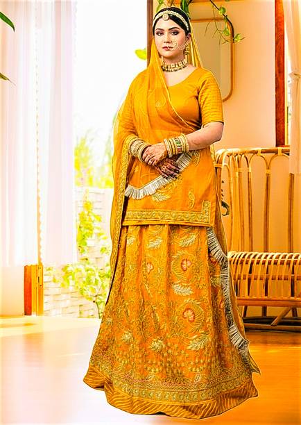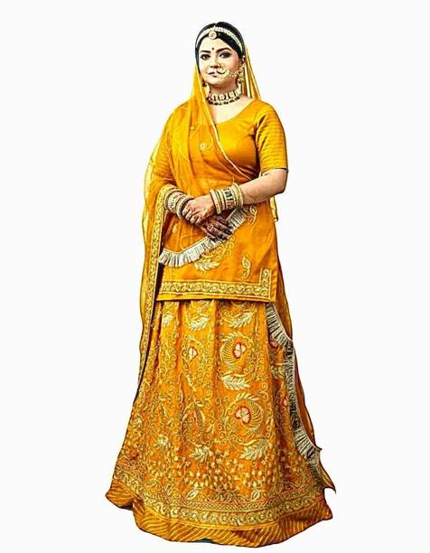 Looking for a bridal lehenga that makes you look traditional and attractive as your big day is round the corner? You can buy Rajasthani lehenga choli sets to find a range of embroidered designs, net dupattas and bright hues that are sure to make you stand out and look adorable. You can find bridal lehengas in different cuts, colours and designs that you can choose from. If you are on the dusky side, you can buy a Rajasthani lehenga choli in bright shades like red and orange. On the other hand, fairer brides can go for chaniya choli sets in lighter shades like pink and peach.
