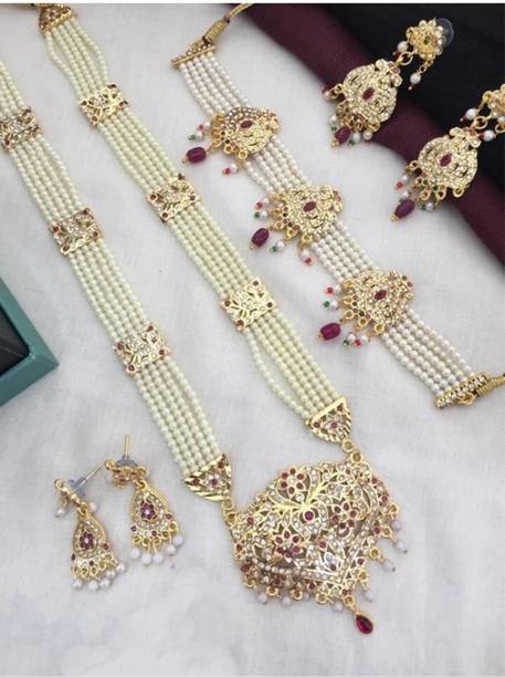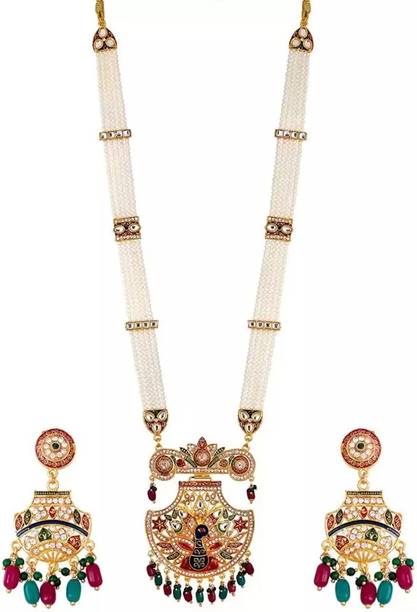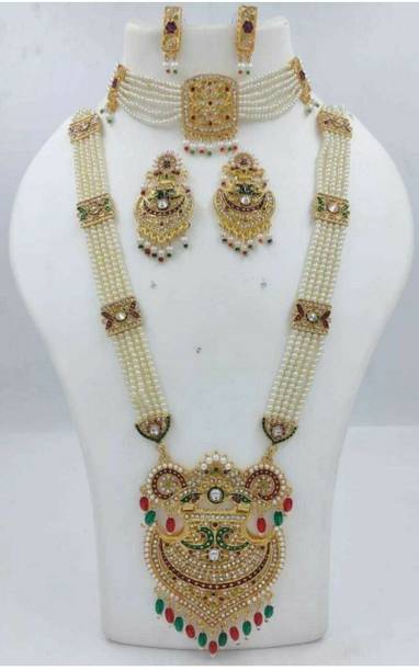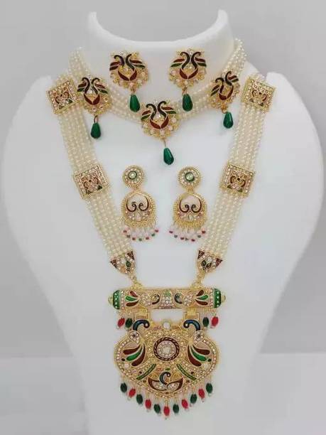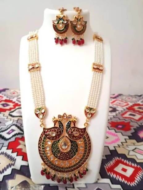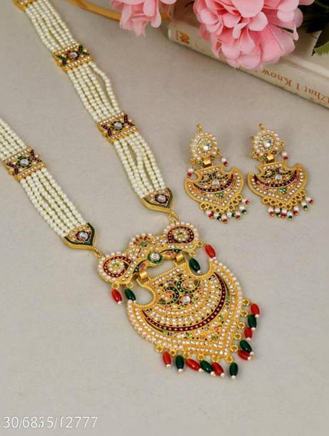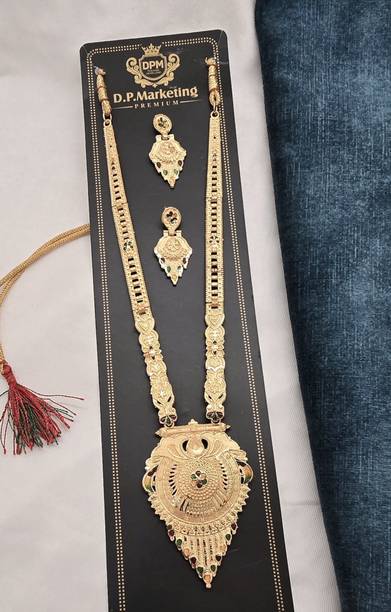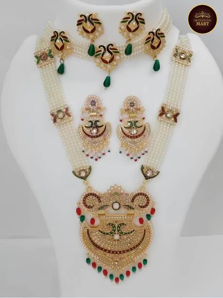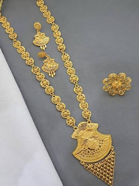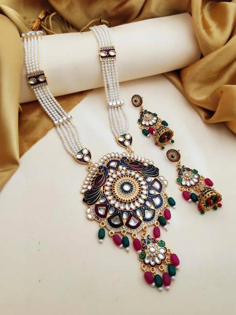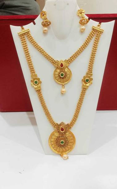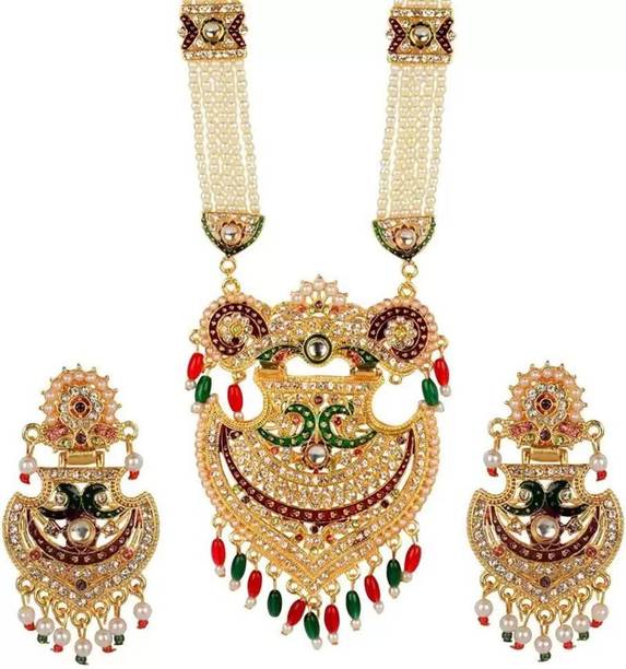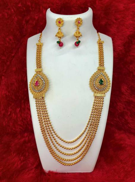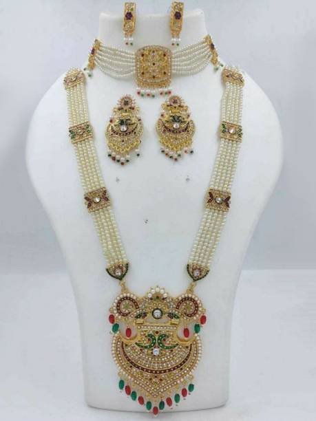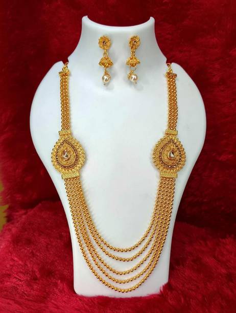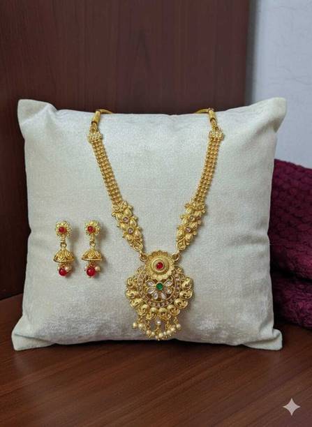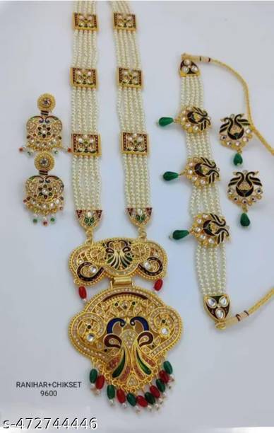 A rani haar is a traditional Indian necklace known for its regal and opulent appearance. Women often prefer this necklace for occasions like weddings, cultural celebrations, and festivities. Apart from that, this necklace is an indispensable part of bridal jewellery. This necklace is generally adorned with intricate embellishments, including enamelling, meenakari work, filigree, and many more. In addition, the pendants are an integral part of this necklace that completes the look of your ensemble. Furthermore, you can select from several trendy options in this necklace online. While some necklaces have a brass base, others have alloys as base metals, and some are gold-plated. This necklace offers versatility and goes with various ethnic wear, such as lehengas, sarees, salwar suits, etc., giving you the best look. Pair them with other jewellery pieces, such as earrings, bangles, rings, mangalsutra, etc., and create a statement wherever you go. You can explore the latest collections of rani haar from the houses of Arti Creations, Sukkhi, Brado Jewellery, Rhosyn, Dreamish Imitation, and many more, available at different price ranges. Buy your desired necklace online and get a convenient delivery to your doorstep.