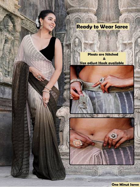 In a world where people are not ready to wait 30 seconds for a reel to end, the same is for draping a saree and that's where the ready to wear saree comes in. This pre draped saree, also known as a readymade stitched saree or one minute saree, is a classic yet contemporary must-have for every woman's wardrobe. You can find a vast and diverse collection of pre-stitched saree at Flipkart to match your personality. For festivals and weddings, choose ornate readymade designer sarees with heavy embroidery. For a minimalistic glam, a colourful readymade saree with lace borders is a great option. Pick your favourites from an array of fashionable georgette, Lucknowi chikankari, Kanjivaram silk, Banarasi silk, traditional Bandhani, or net sarees. Styling the latest designer ready to wear saree is versatile; pair it with a matching or contrasting blouse and jewellery to make heads turn, or create an Indo-Western fusion look with a closed jacket. Browse and shop for your ideal ready to wear saree from Flipkart.
