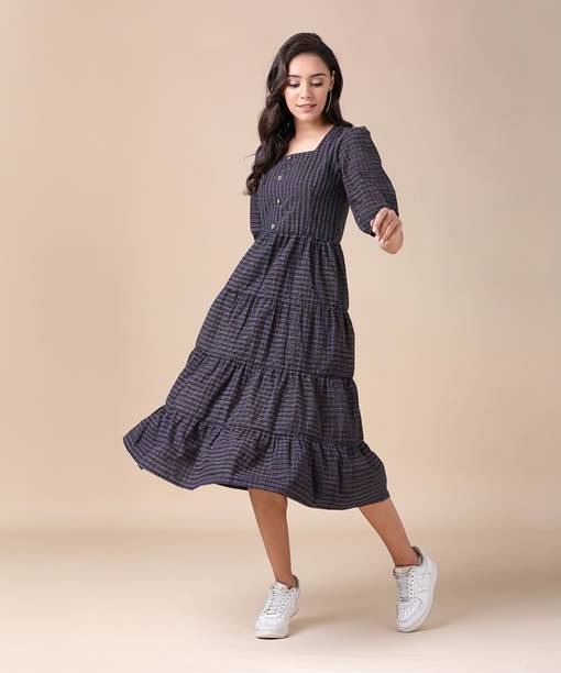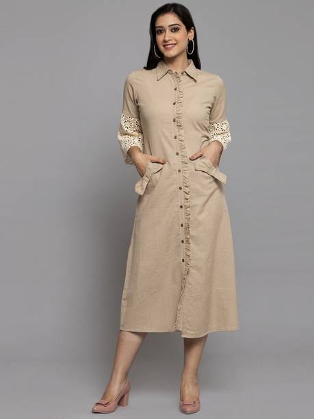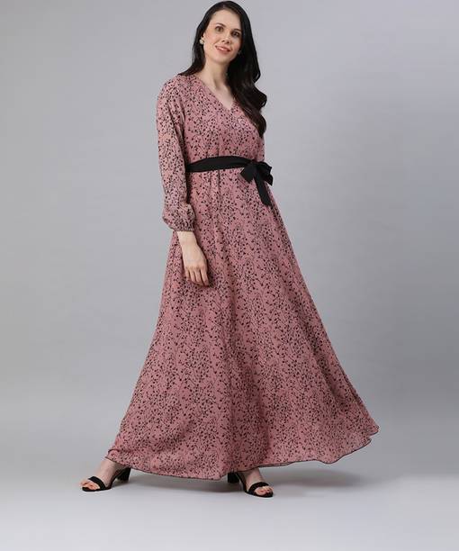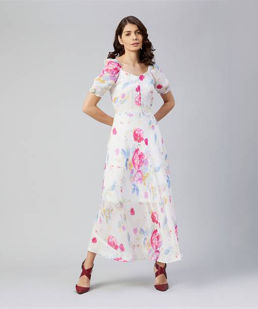 Shree Gurukripa Arts Women Maxi White, Pink Below Knee Dress