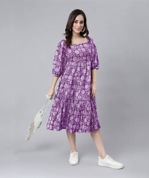 Gujari Women Fit and Flare Pink Midi/Calf Length Dress