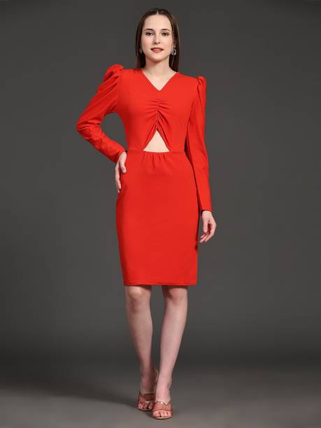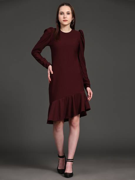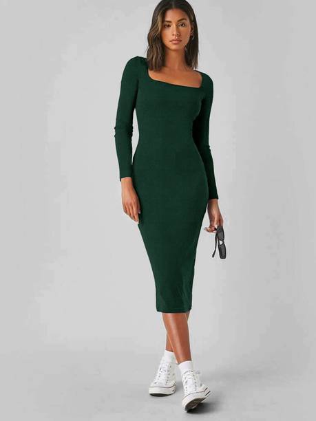 Attire Empire Women Bodycon Maroon Midi/Calf Length Dress