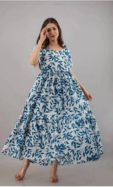 Malia Fashion Women Fit and Flare White Maxi/Full Length Dress