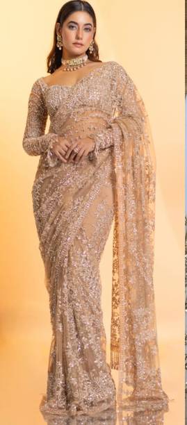 Reception sarees in a blend of traditional designs and innovative silhouettes can never go out of style. You can adorn this ethnic attire for any festivities or occasions, specifically Indian weddings. You can choose from a variety of materials including raw silk, pure cotton, georgette, net, and many more. Pick from the popular styles like Jaipuri block prints, Banarasi or brocade silk, mirror work, and zari work for a rich traditional look with a contemporary twist. Find your impactful ensemble for the wedding finale from a range of sequinned, embellished, pre-stitched, and all sorts of celebration-worthy sarees. Nail that perfect bridal look on your special day with your choice of a grand reception saree. For a comfortable yet elegant ensemble, you can choose a saree with intricate but light embroidery and print. For a regal reception look, choose a heavily embroidered brocade saree in a bright colour. To further amp up your look, pair them with contrasting or matching blouses. Complete your look with matching accessories and a sleek hairdo. Build your wedding trousseau and add that extra zeal into your ensemble. After all, you'll be the centre of attention! Explore the latest reception sarees available online from popular brands like Veehaus, For And Ever, The Fashion Outlets, Kalkee Fashion, Bridon, and many more. The information you are reading has been last updated on 02-Jan-26.