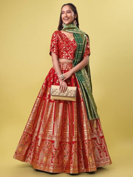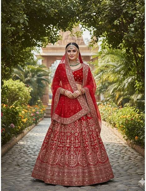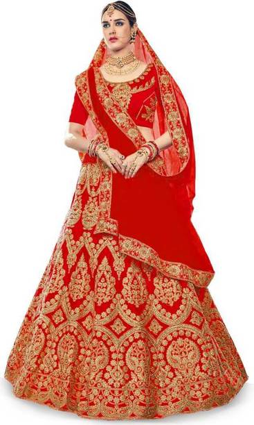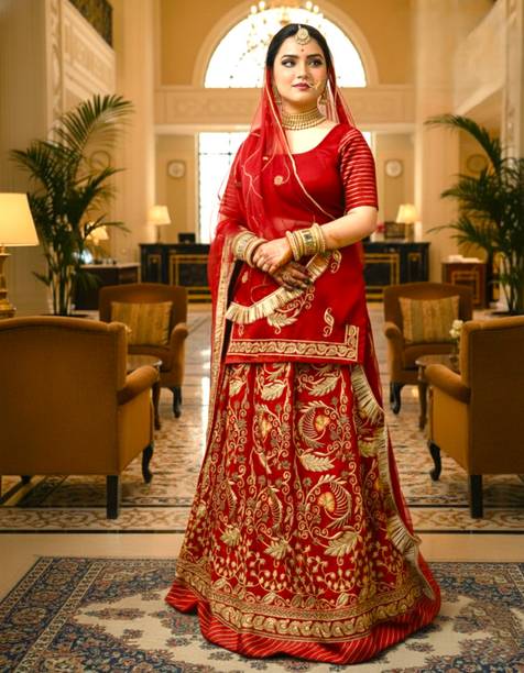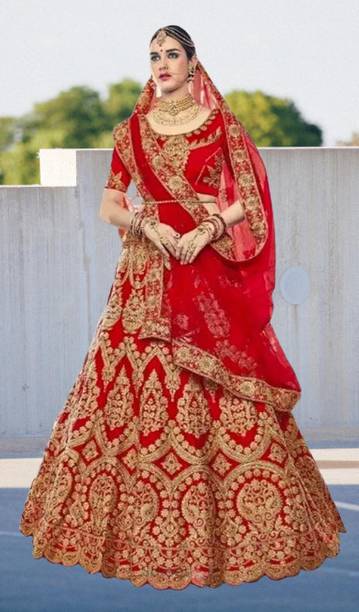Looking for ideal bridal wear options? If yes, then you can check out the wide range of red bridal lehengas easily available online. The colour red has deep significance in Indian culture, as it is representative of the traditional and cultural richness. Therefore, lehengas in red can be the ideal option for you to look special on your special day. Made of premium quality fabric materials, including the likes of cotton, silk, georgette, satin, and so on, these lehengas can keep you comfortable. As a result, even when you are dressed in the lehenga for a longer period of time during your wedding ceremonies, you can look gorgeous while being able to carry it with ease. Moreover, you can find the latest trendy ethnic wear options that are adorned with vibrant embroidery works, embellishments, and prints that can help you achieve the looks of your dreams for your wedding. So, scroll through the numerous choices available and find the one that checks all the boxes as per your wishlist. You can also use the filters online to further narrow down your search and select the lehenga best suited for you. Check out brands like Divyam Fab, Immy, Kedar Fab, Mert India, and more that offer red bridal lehengas at varied prices online.