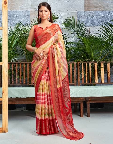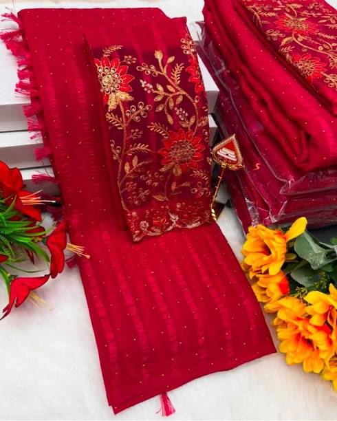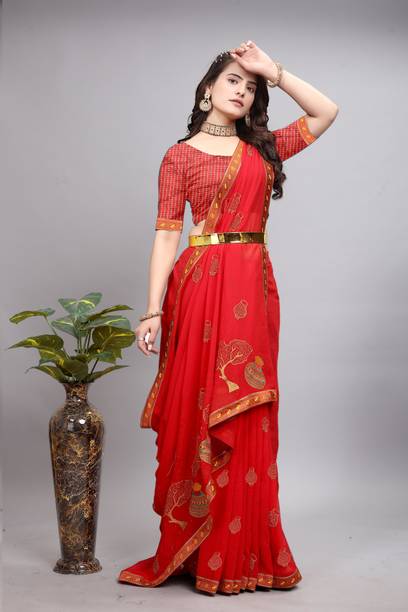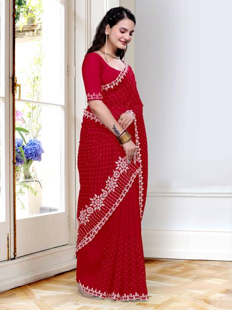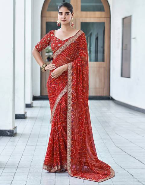 Sarees come in a variety of designs, fabrics, types, patterns, colours and lengths. The red chiffon saree is a popular choice among women because of the fabric as well as the colour. Chiffon is a thin, transparent cloth made with silk or nylon. Because of its versatility, the saree can be worn for various occasions, be it festivals, weddings, parties, or casual outings. You can choose from a variety of patterns like floral print, embroidered, solid-coloured, blocked-printed, checkered when browsing for sarees online. You can also select the style of saree you want. Regular, stitched, lehenga sari, and half-and-half sari are popular designs among these sarees. You can even choose the length of the saree most preferable to you. They are available in lengths ranging from 4.5 m to 7 m and more. You can shop from popular brands like Anand, Ratnavati, V and V Shop, SAARA, LIME, and many more. Browse for red chiffon sarees online and get them delivered to your doorstep. You may either buy a single piece or up to a pack of 10 at once. You can also gift a red chiffon saree to your loved ones or friends. The information you are reading has been last updated on 15-Oct-25.