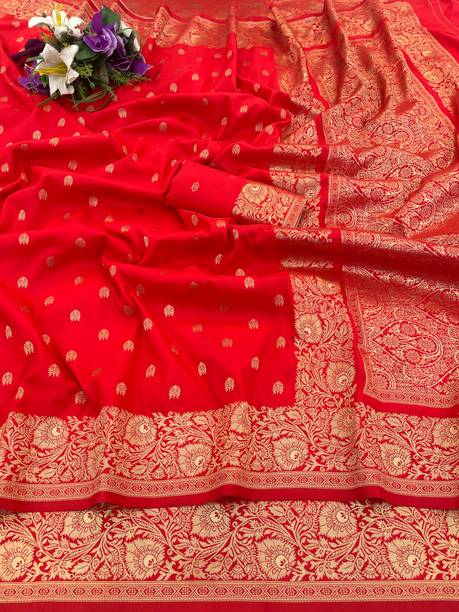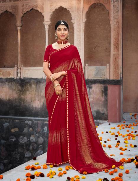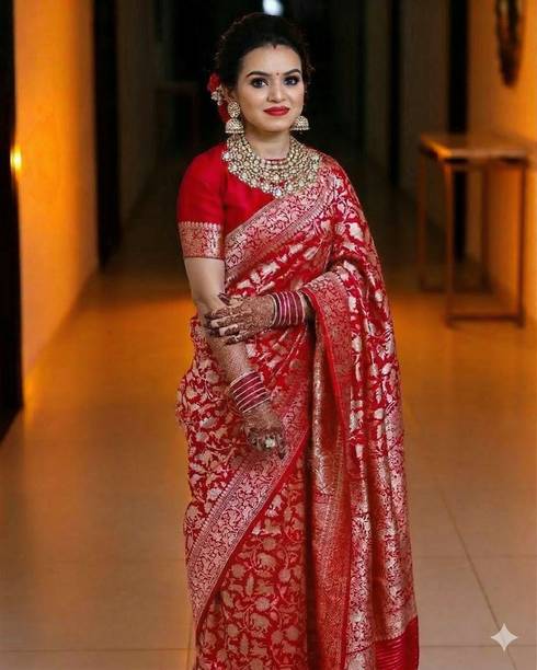 Red sarees for weddings are sought after by many brides for their sheer beauty. Weddings are a great occasion to dress up in an ethereal red saree. Whether you are the bride or one of the bridesmaids, you will want to look your best. The colour red and weddings go hand in hand due to a number of cultural reasons and personal beliefs. Irrespective of whether one wants to believe in them, it cannot be denied that the colour red is striking and magnificent at the same time. There’s not a lot that can go wrong with your wedding ensemble while it contains a red saree. You can pair it with heavy gold jewellery to accentuate its beauty. Given the rich décor at weddings, a magnificent red saree will go very well with the vibe of the occasion. You can pick from a plethora of red sarees for weddings, such as Kanjeevaram, Banarasi Silk, Mysore Silk, handwoven, or temple border to name a few. You may even choose from embroidered sarees, geometric pattern sarees, and chiffon sarees for a more contemporary look. You can shop for the latest red sarees for weddings available from a number of well-known brands like SAARA, 3SIX5, Rola Trendz, Being Banarasi, and Anand. The information you are reading has been last updated on 26-Mar-26.