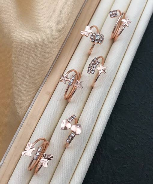 Rings are trendy pieces of jewellery that are loved by most men and women. The fashionable jewellery adds sparkle and glitz to the fingers in a manner that accentuates their beauty and sleekness. Certain types of finger bands emphasise authority and status in society. When used at wedding vows and engagements, they represent dedication and love between the married or engaged couple. There are different types of gemstones in many colours that may be embedded in the band, like amber, emerald, cubic zirconia, mother of pearl, Swarovski crystal, etc. Browse and check band varieties for men, women, boys, and girls online. Various materials are used to craft finger bands like German silver, brass, copper, stainless steel, oxidised silver, white metal, gold, etc. Choose from varied themes in design such as American diamond band, Boho band set, wedding style bands, rose gold bands, etc. You may select from ethnic, classic, or designer varieties accessible with attractive offers online. Check out the best prices selections in the available cluster and buy a beautiful ring for your loved one. Order the latest rings (new) designs online from brands such as Karishma Kreations, Zaveri Pearls, Yellow Chimes, University Trendz, Heer Collection, etc. The information you are reading has been last updated on 10-Oct-25.