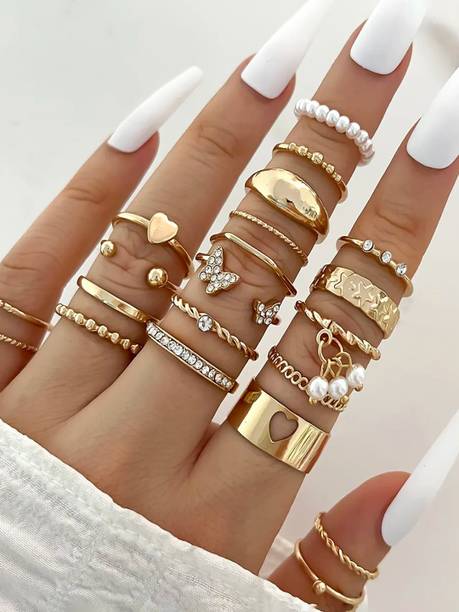 Rings are trendy pieces of jewellery that are loved by most men and women. The fashionable jewellery adds sparkle and glitz to the fingers in a manner that accentuates their beauty and sleekness. Certain types of finger bands emphasise authority and status in society. When used at wedding vows and engagements, they represent dedication and love between the married or engaged couple. There are different types of gemstones in many colours that may be embedded in the band, like amber, emerald, cubic zirconia, mother of pearl, Swarovski crystal, etc. Browse and check band varieties for men, women, boys, and girls online. Various materials are used to craft finger bands like German silver, brass, copper, stainless steel, oxidised silver, white metal, gold, etc. Choose from varied themes in design such as American diamond band, Boho band set, wedding style bands, rose gold bands, etc. You may select from ethnic, classic, or designer varieties accessible with attractive offers online. Check out the best prices selections in the available cluster and buy a beautiful ring for your loved one. Order the latest rings (new) designs online from brands such as Karishma Kreations, Zaveri Pearls, Yellow Chimes, University Trendz, Heer Collection, etc. The information you are reading has been last updated on 09-Oct-25.