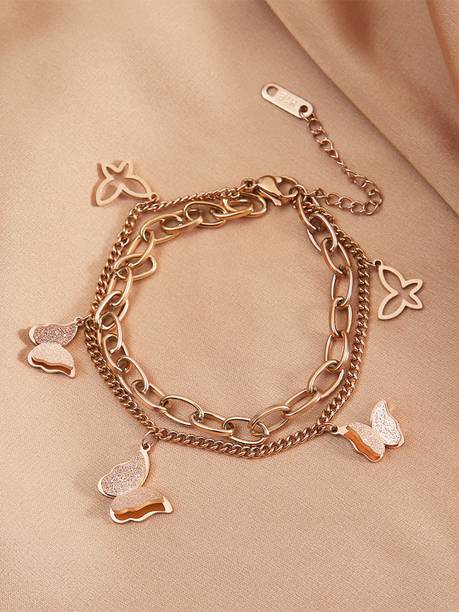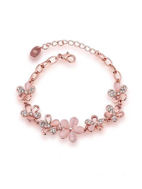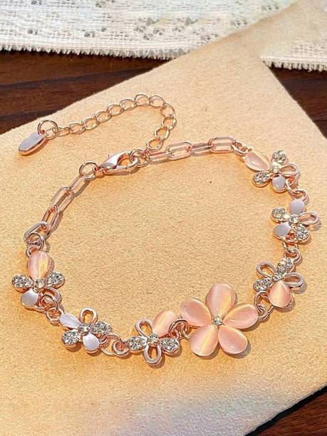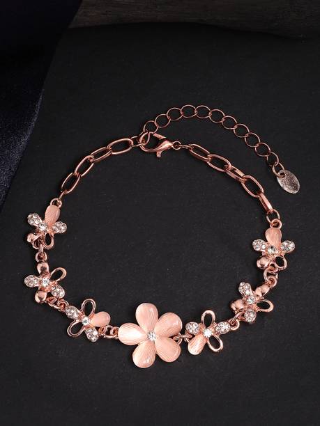 Spruce up your style with dainty rose gold bracelets and ornaments plated in the beautiful hues of pinks. These exquisitely crafted wrist ornaments are available in materials such as brass, bronze, copper, tungsten, zinc, stainless steel, and other alloys. You can opt for bracelets studded with American diamonds, pearls, Swarovski crystals, moonstone, zircons, and other precious or semi-precious stones. Explore from an exquisite collection of rose gold bracelets, armlets, charm bracelets, cuffs, kadas, bangles, hand thongs, ring bracelets, tennis bracelets, and more to pair with your formal, casual, and party attire. Choose from classic minimalistic designs or opt for pieces inspired by flowers, butterflies, geometric shapes, hearts, and more. The rose gold plated bangle watch can be an ideal gifting option for special occasions like birthdays, anniversaries, Valentine’s day, or festivities. You can shop for the latest rose gold bracelets online from popular brands such as Shining Diva, Jaipur Gemstone, Joker and Witch, Stylish Teens, ZAVERI PEARLS, and many more. Add these beautiful pieces of ornaments to your jewellery collection or buy them for the special woman in your life. Shop from the comfort of your home and have them delivered to your doorstep. The information you are reading has been last updated on 29-Dec-25.
